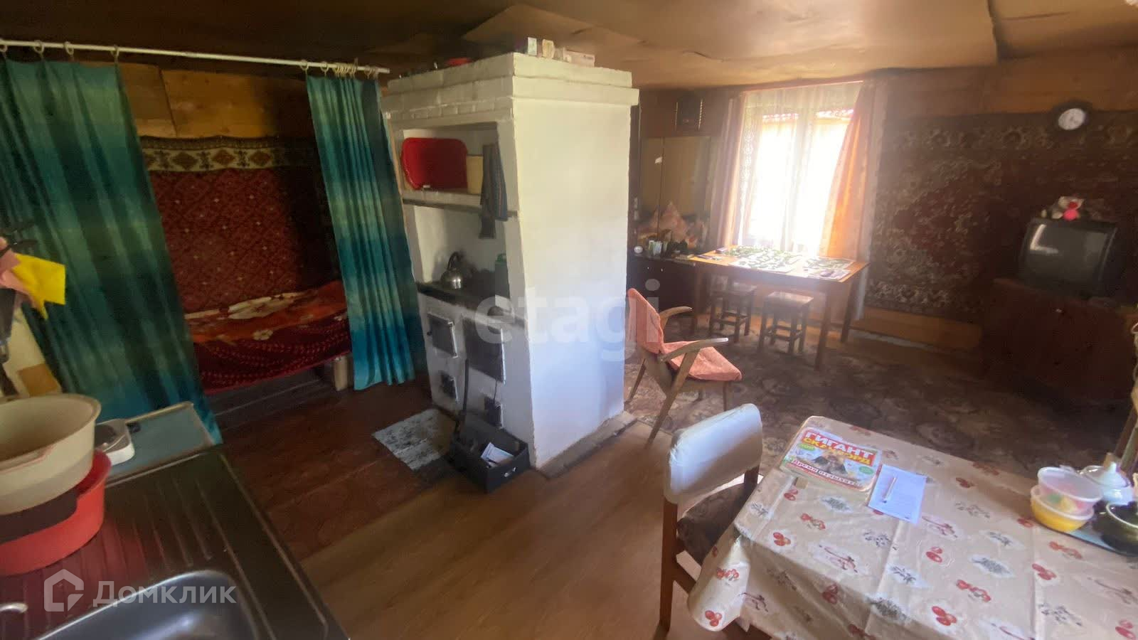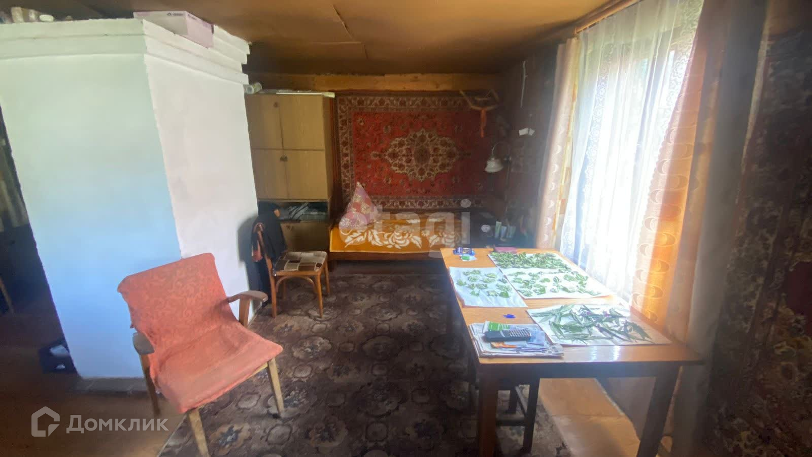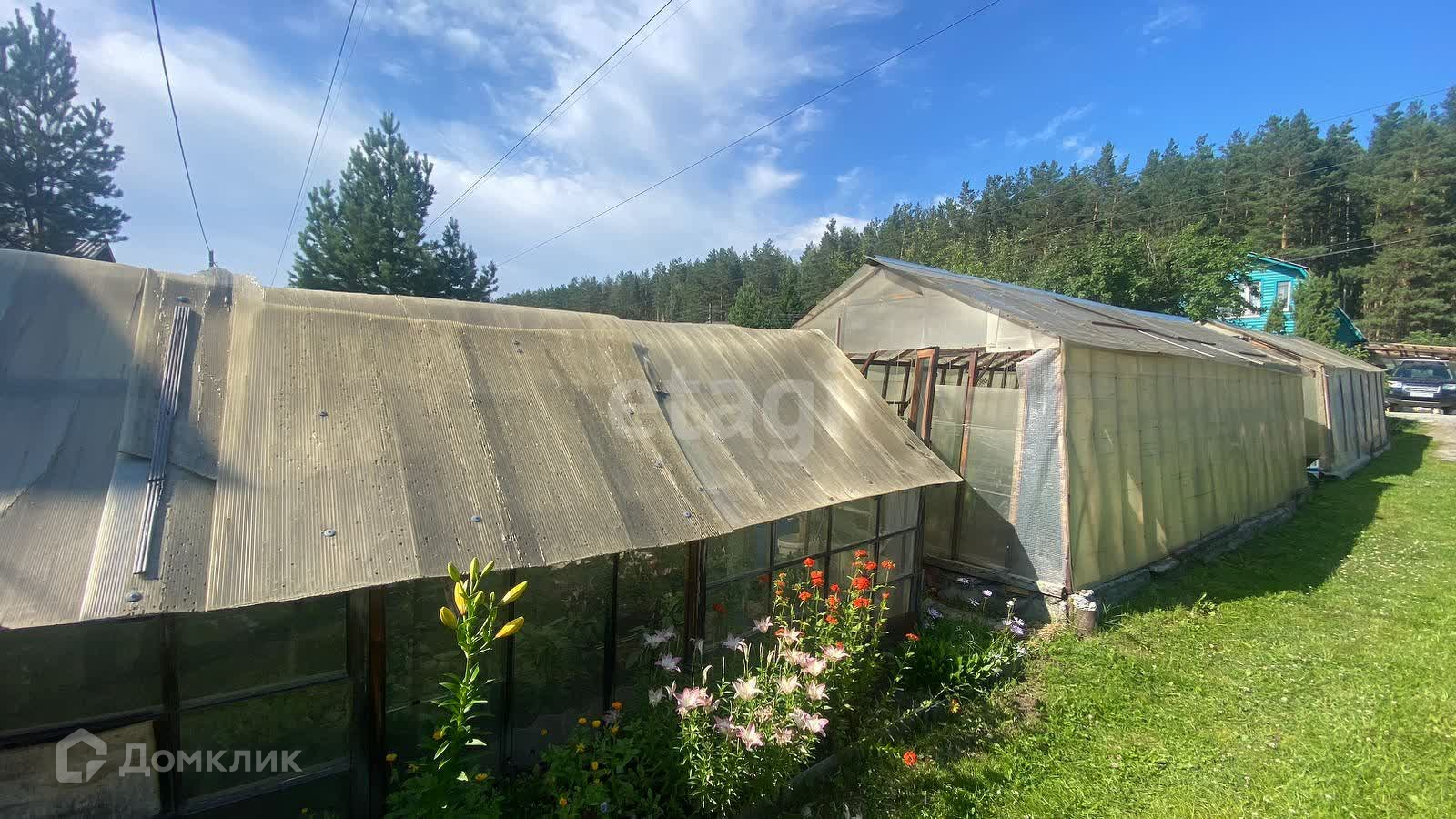 Дом площадью 35 м2 расположен на участке 6.33 сотки. Так же имеются баня, две теплицы, огуречник, гараж-сарай и дровяник.