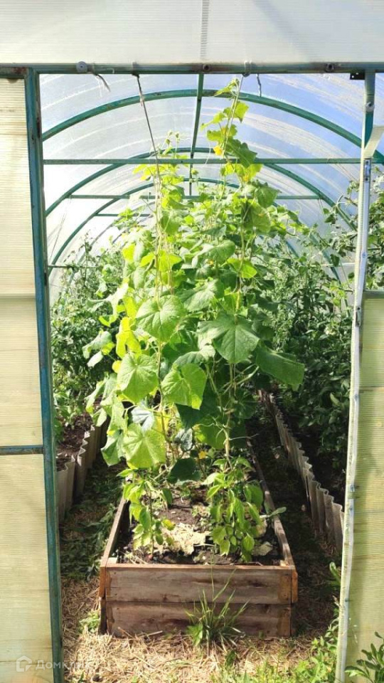 Имеются две теплицы. Одна из поликарбоната, в которой растут огурцы, помидоры, перец,