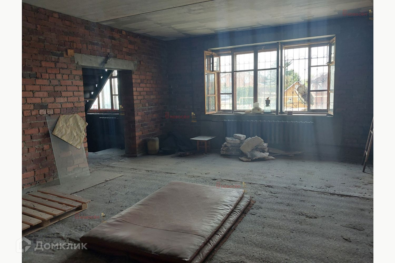 Дом полностью из кирпича. Фундамент - блоки. Стены - 2,5 кирпича (60 см). Перекрытия - бетонные плиты. Потолки - 3,2 м. Крыша - профлист. Размеры 12*18*12 метров. Отопление - твердотопливный котел. Газ - на границе участка! Вода - скважина, заведена в дом. Канализация - центральная. Эл-во - 380 В. Метраж около 600 метров.