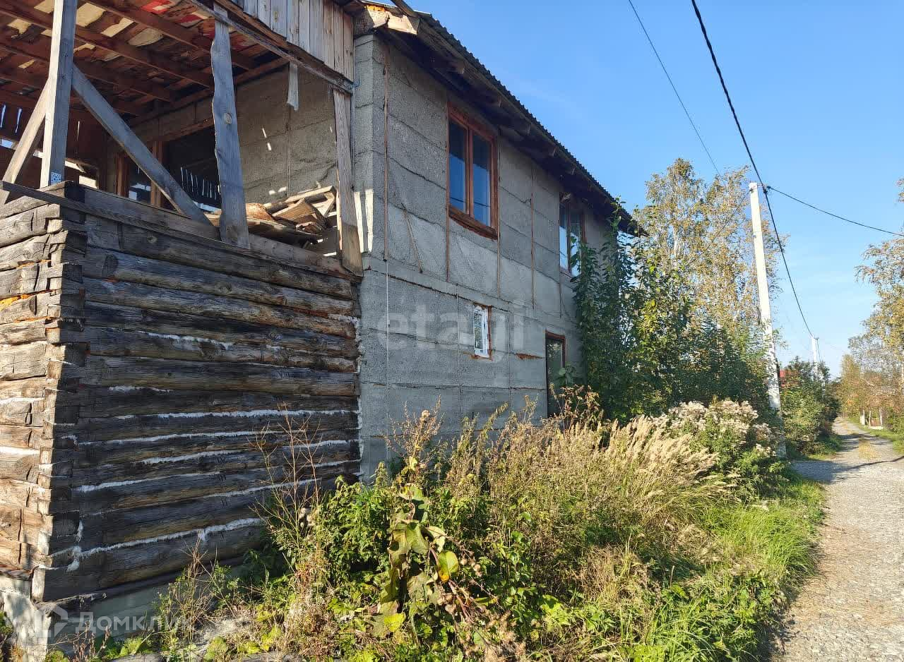 К дому сделан пристрой из бревна, на фото видно, в нем планировалось разестить баню.