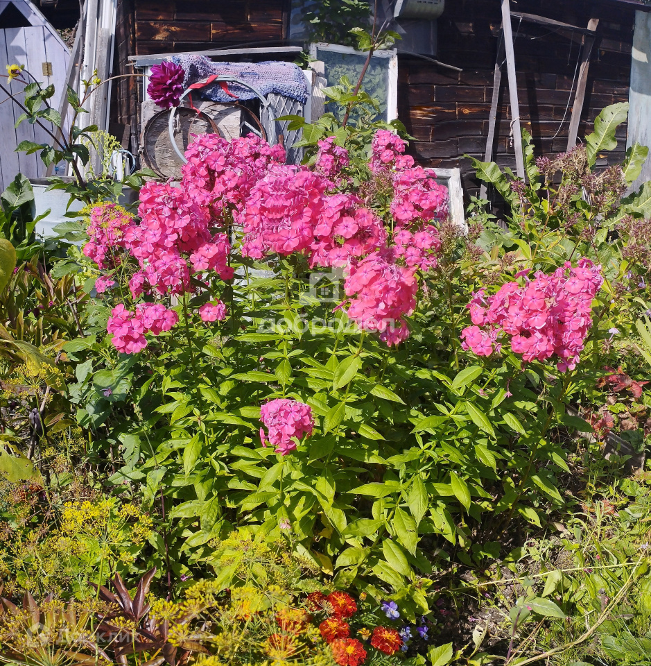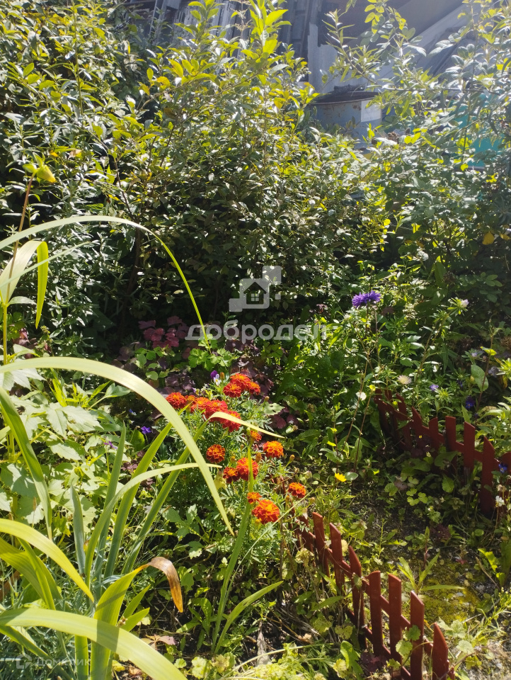 Участок правильной формы, сухой. Растут Яблони многолетние кустарники, множество цветов. Есть две теплицы, под помидоры и огурцы.