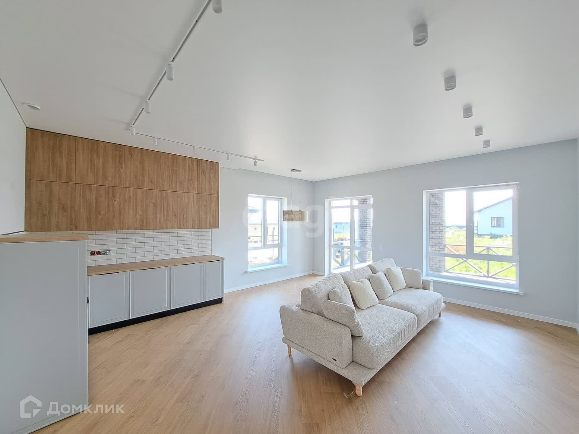 Большая кухня-гостиная с выходом на террасу, три изолированных комнаты, санузел, котельная. Отделка "под ключ". Ремонт и мебель на фото входит в стоимость.