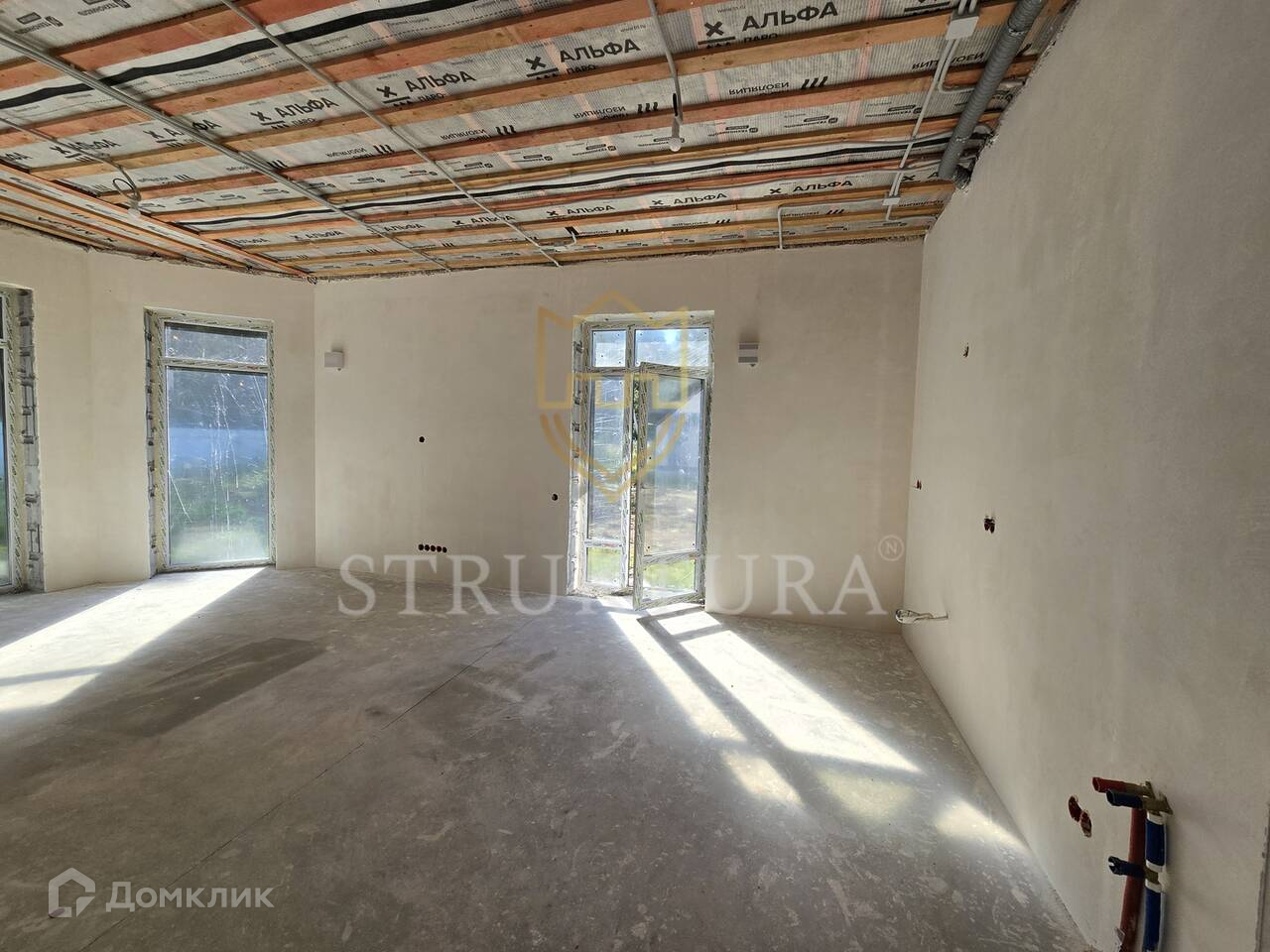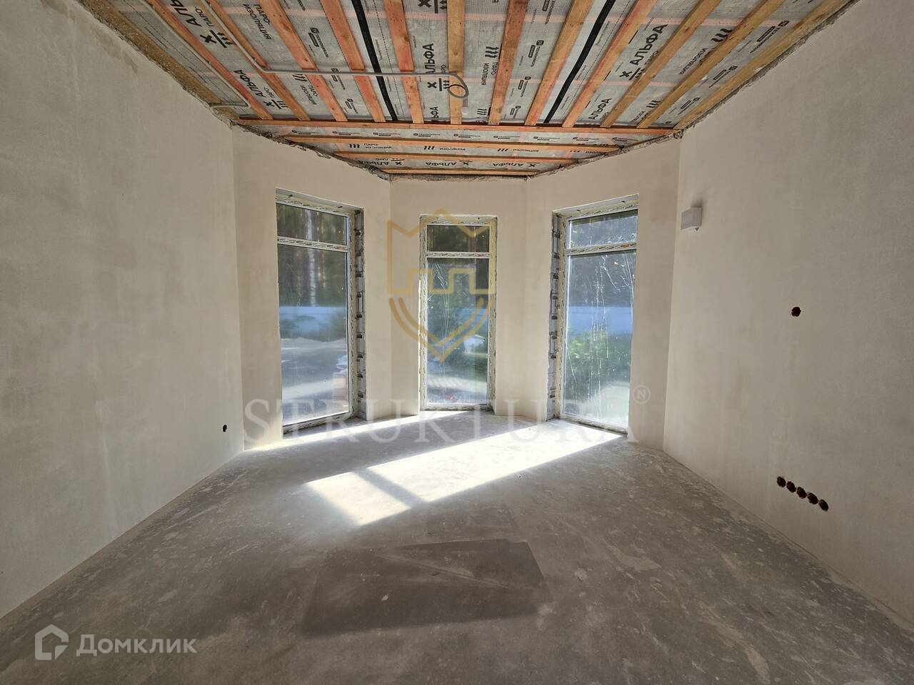 - кровля: монолитный железобетонный армопояс по периметру здания, стропильная система деревянная, покрытие кровли — мягкая черепица «Технониколь»;