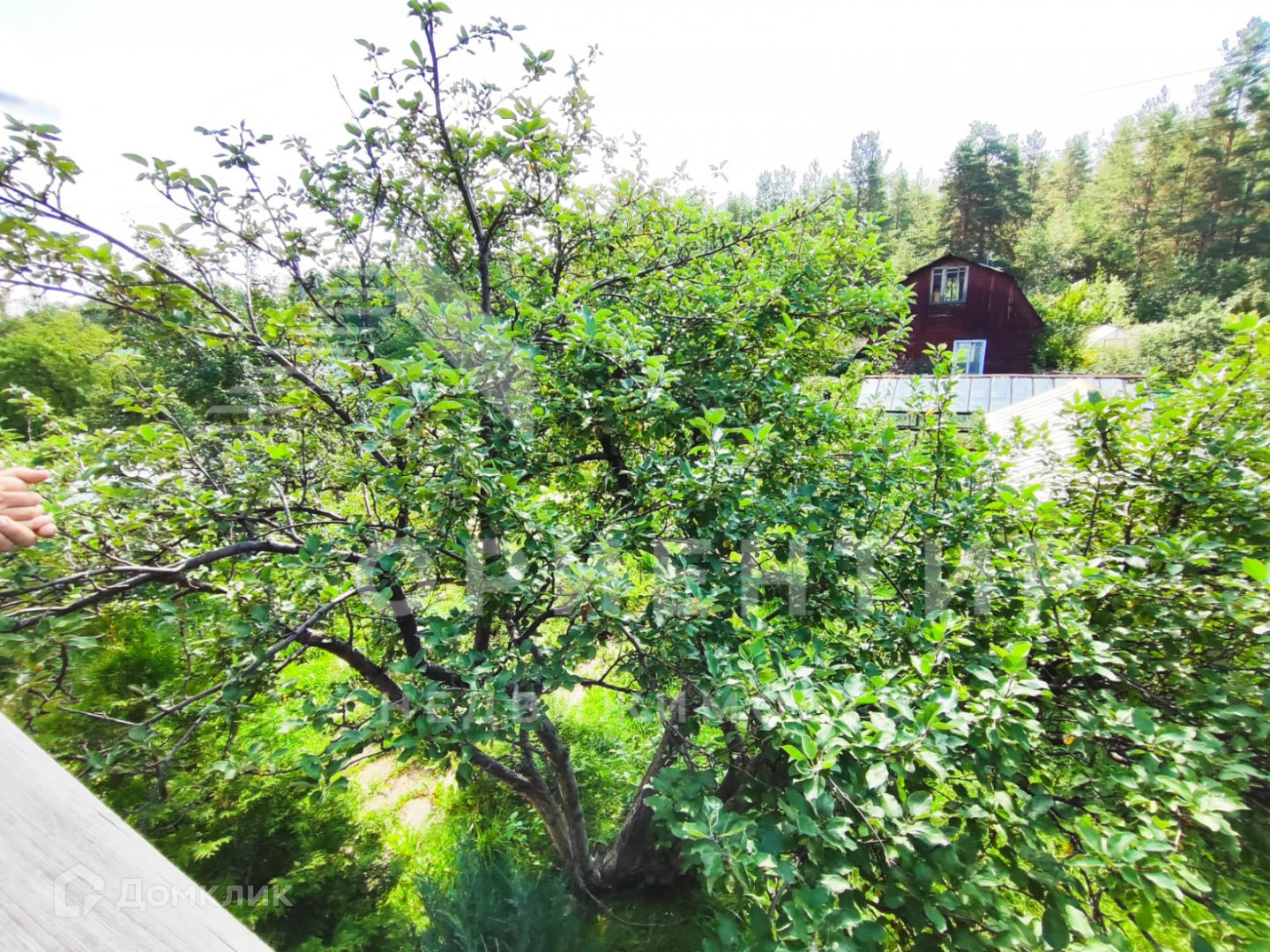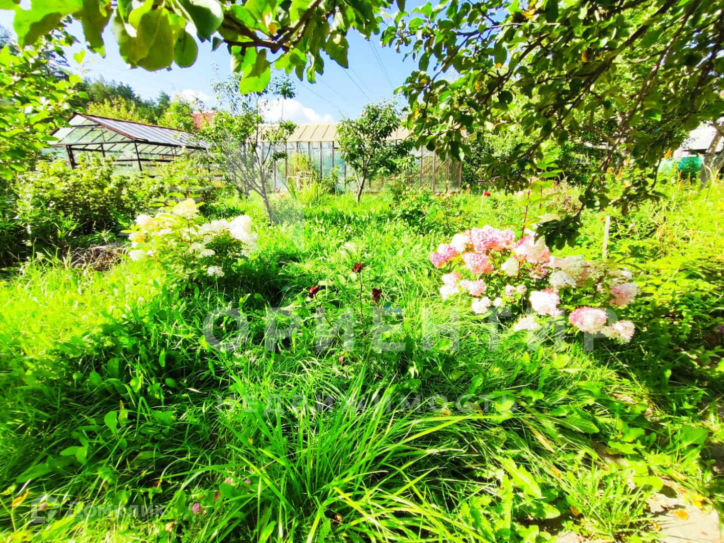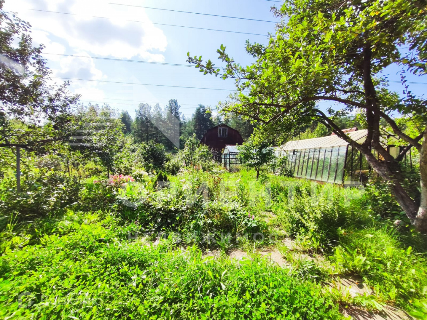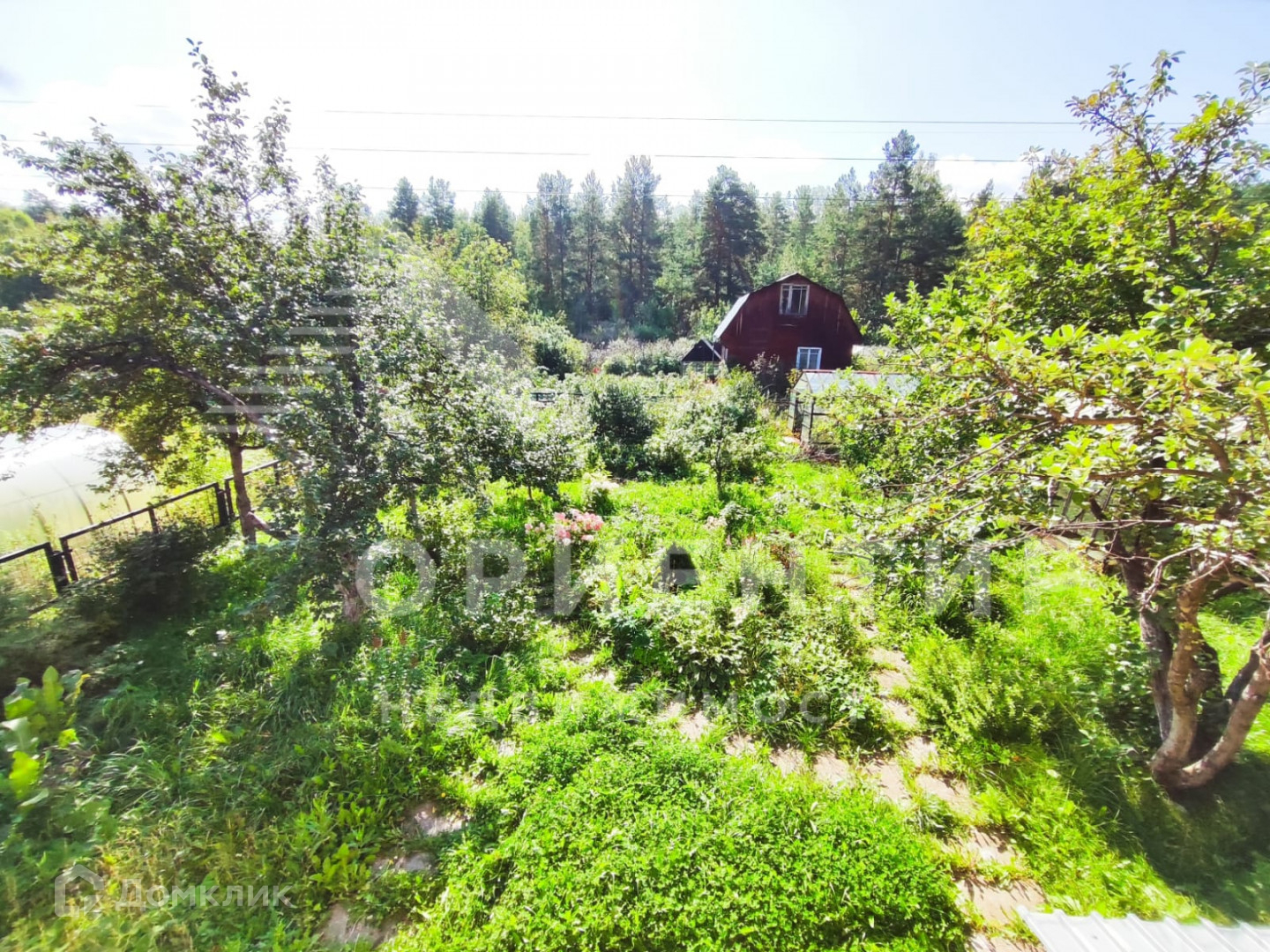 На участке посажен фруктовый сад(несколько видов яблони,груши, черешня, вишня, смородина)