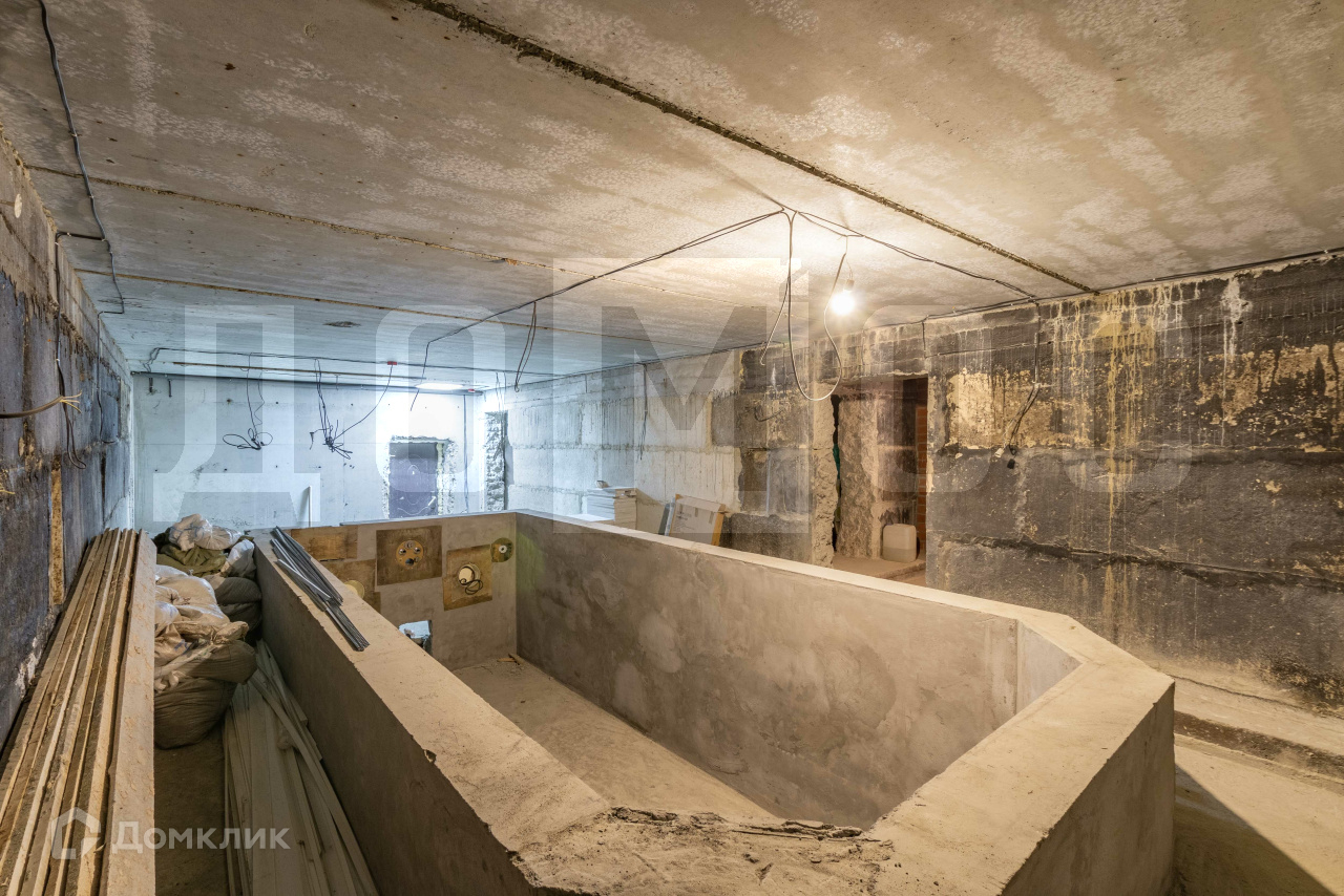 Котельная с оборудованием, бассейн в цокольном этаже, гараж на 2 машиноместа. Монолитные перекрытия и лестница, 4 спальни, 3 санузла. Участок ИЖС.