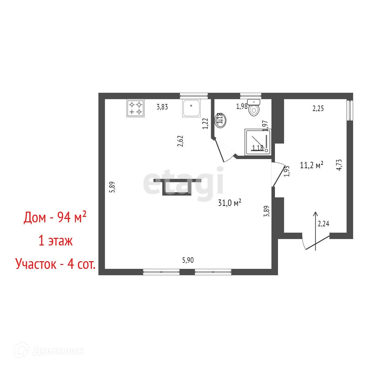 Общая площадь 94 м2