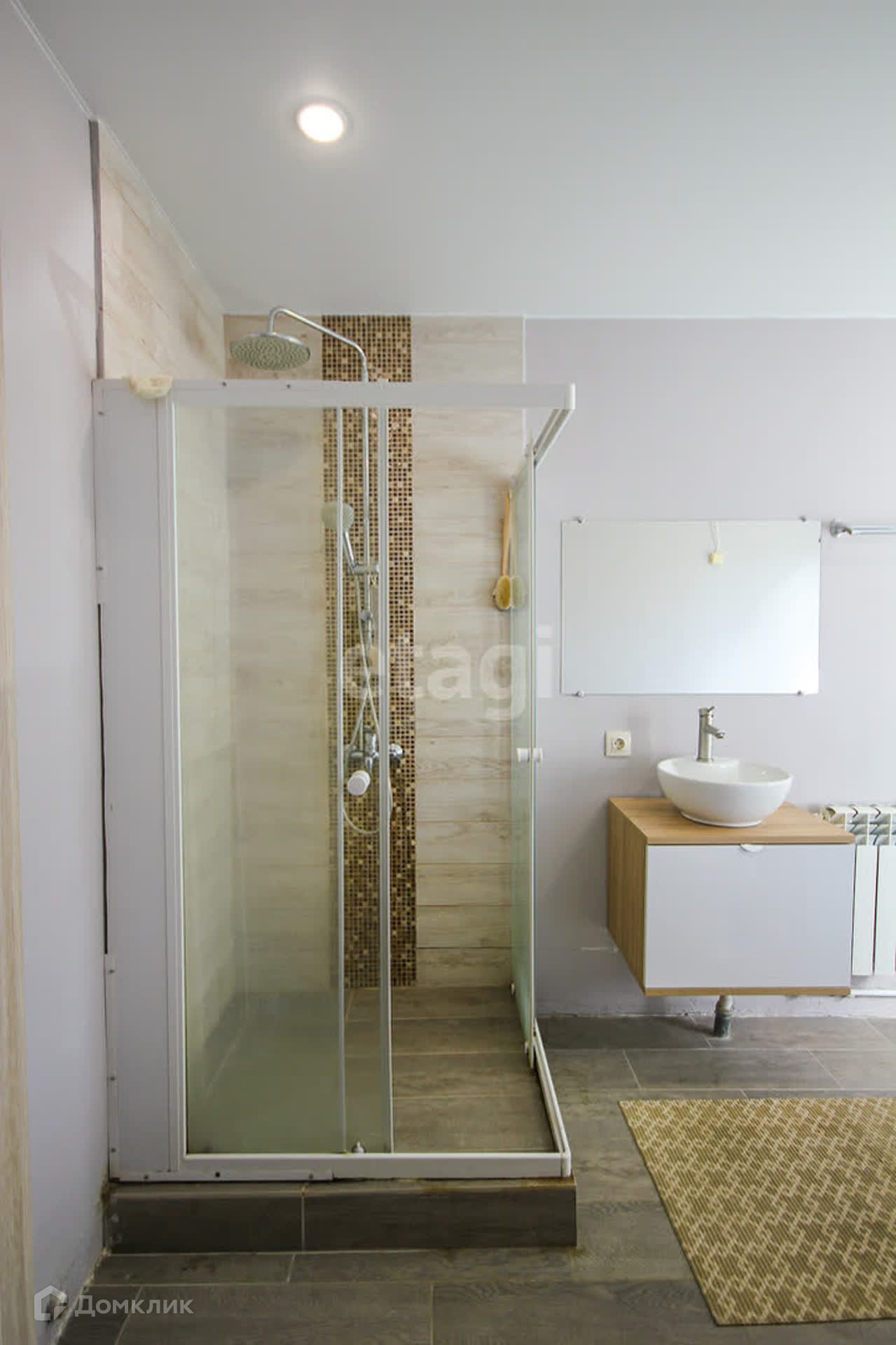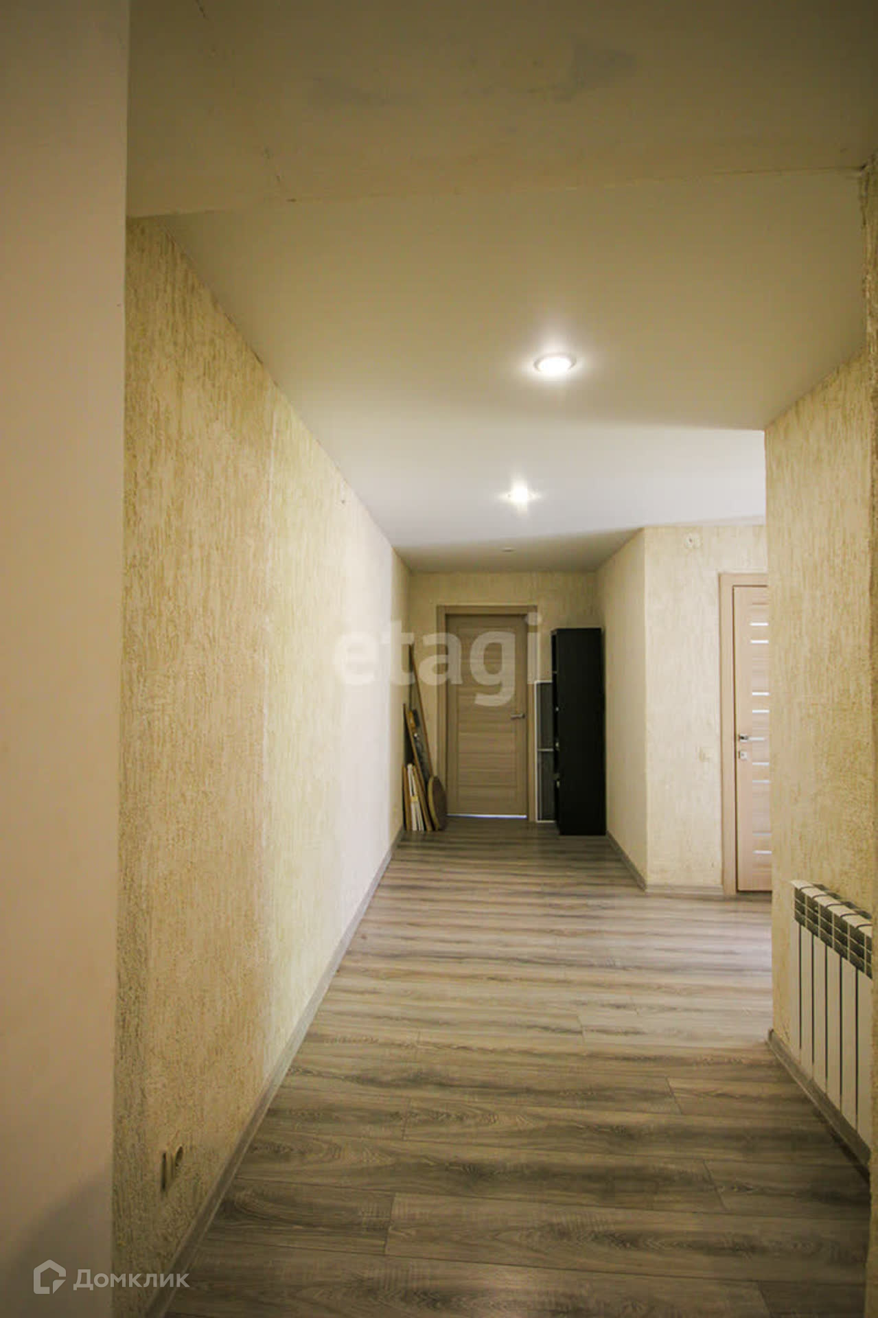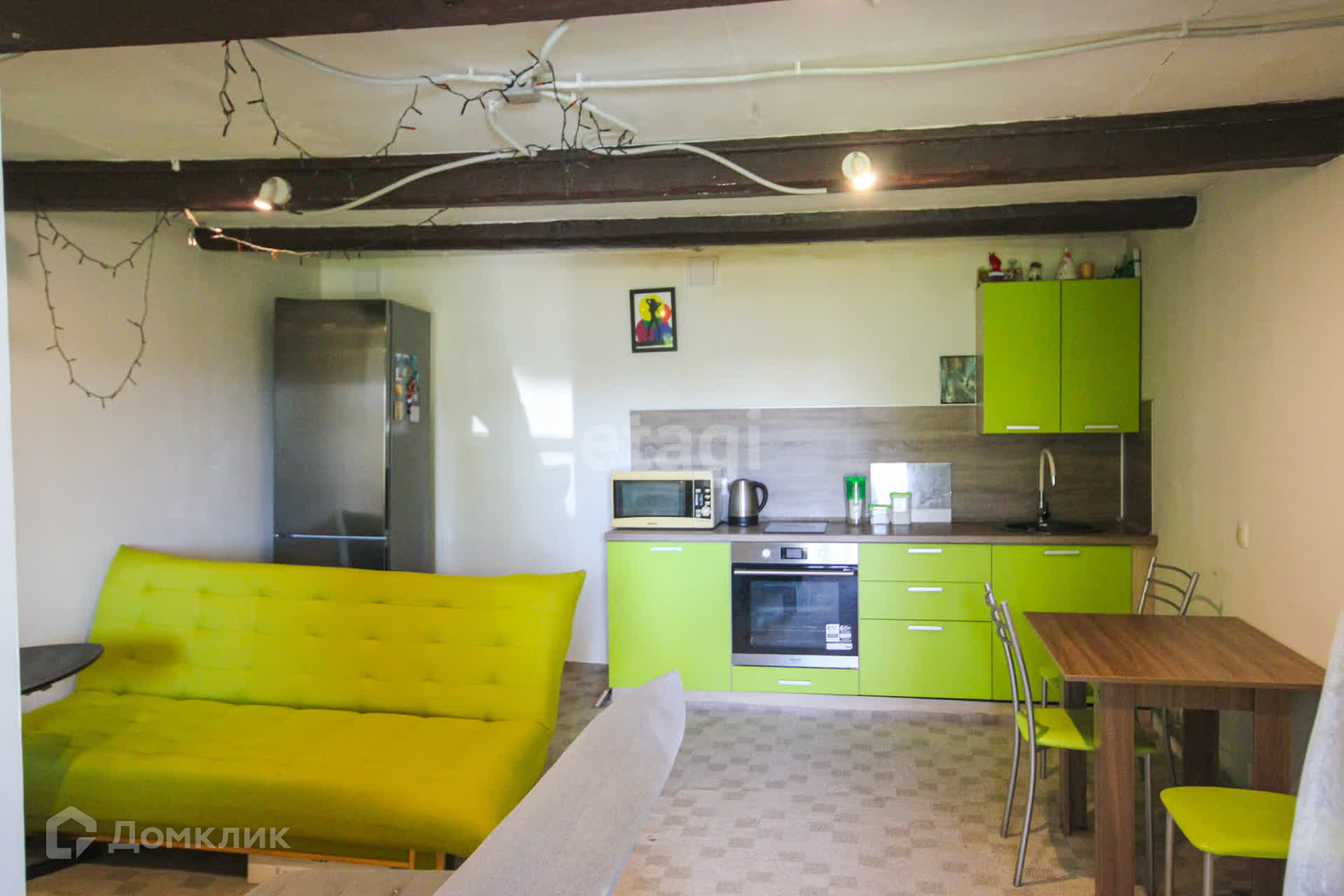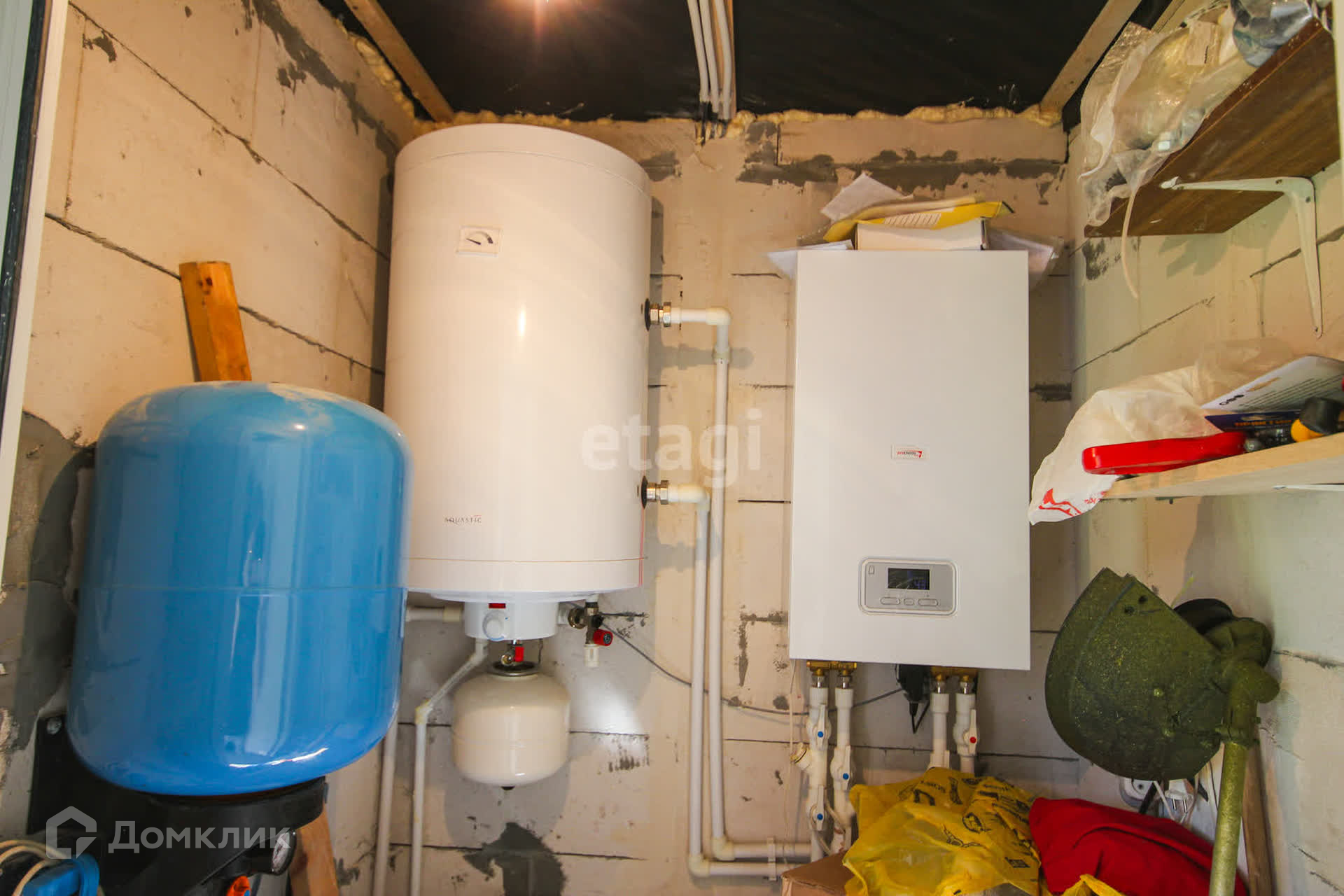 В доме установлены пластиковые окна, на полу ламинат, натяжные потолки с точечными светильниками, электрокотел, радиаторы отопления, датчик поддержания заданной температуры в доме, водонагреватель. В кухонной зоне установлен гарнитур с встройкой.