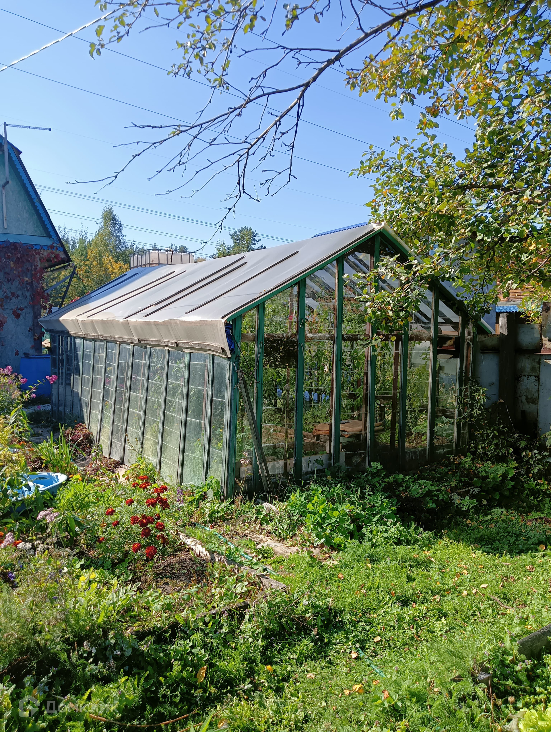 Уютная дача 54,5 кв.м. на просторнoм учacткe 8.3 сoтoк с баней, летней верандой, теплицами на участке, гаражом и сараем.