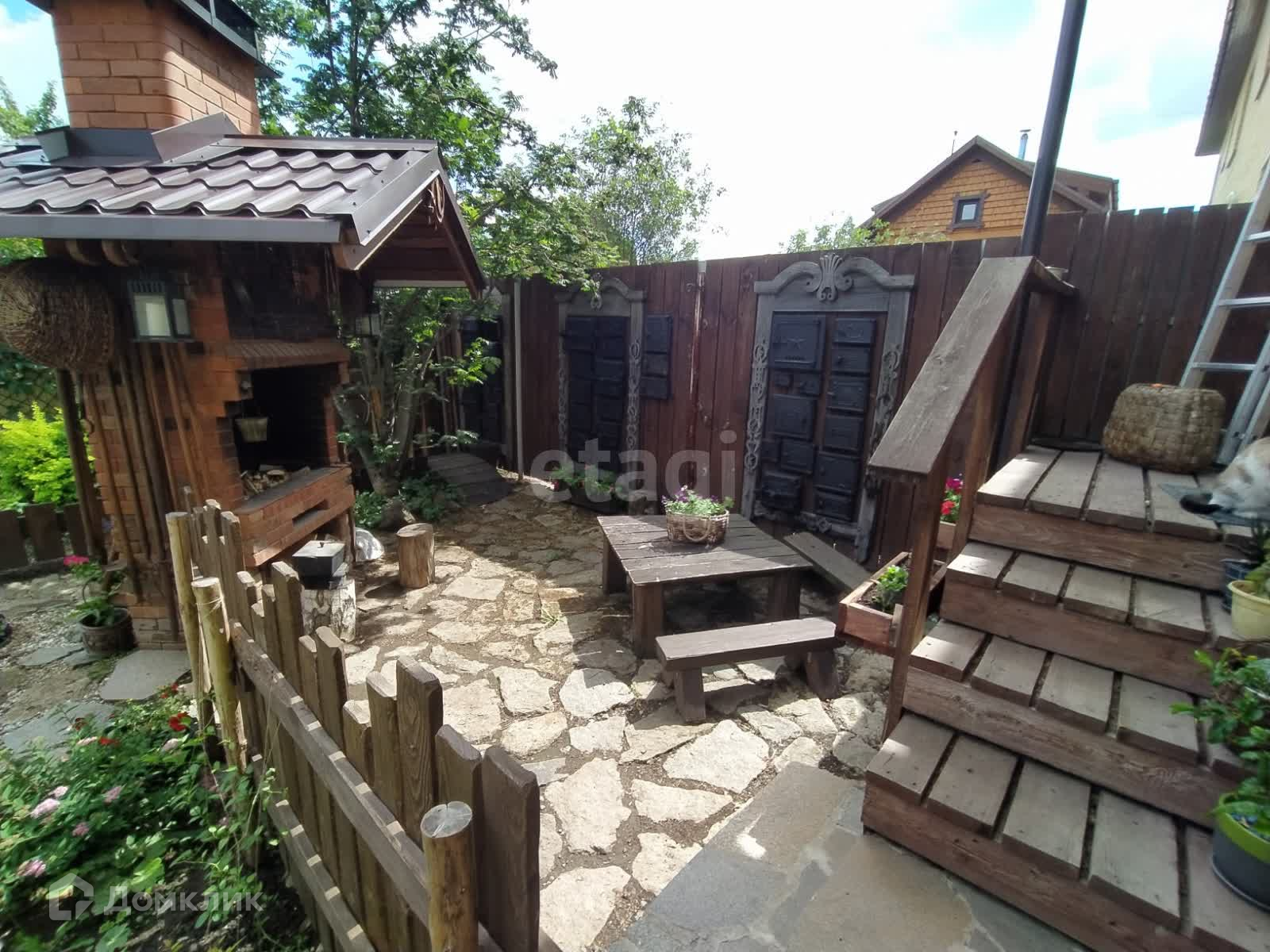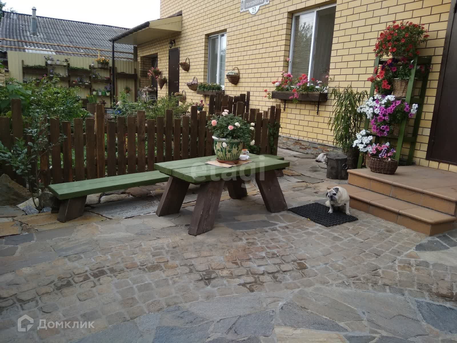Перед домом большая зона отдыха, выложенная плитняком. Летом можно ходить босиком.