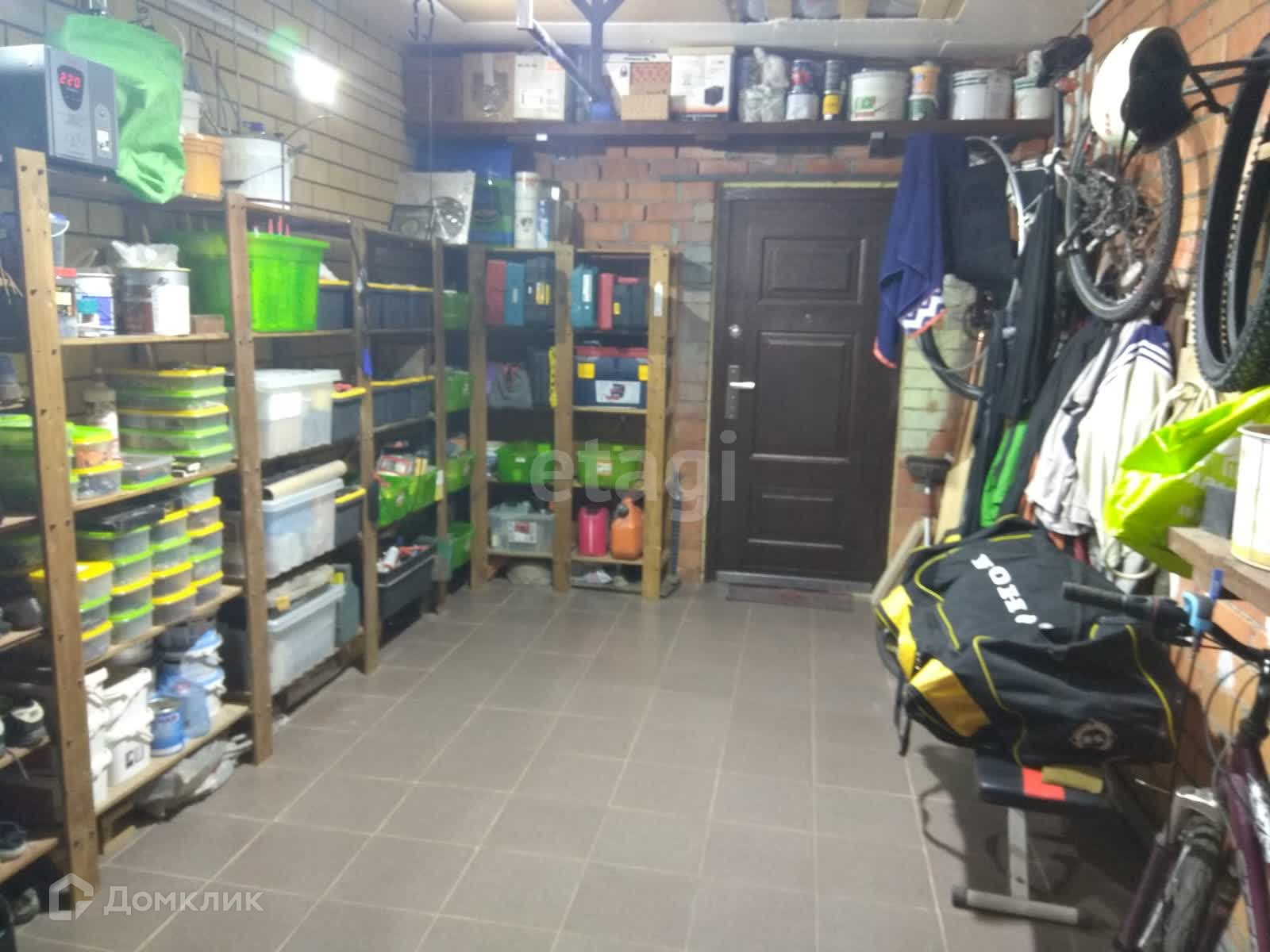 Гараж теплый, автоматические ворота, пол выложен керамогранитом, выход в отдельную котельную. В котельной выведены коммуникации для стиральной машины, В гараже есть выход на чердак. Большое пространство для обустройства мест хранения. Очень удобно для хранения колес и прочих, не часто используемых вещей.