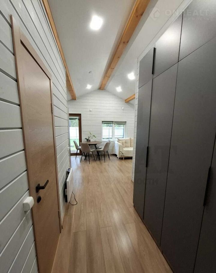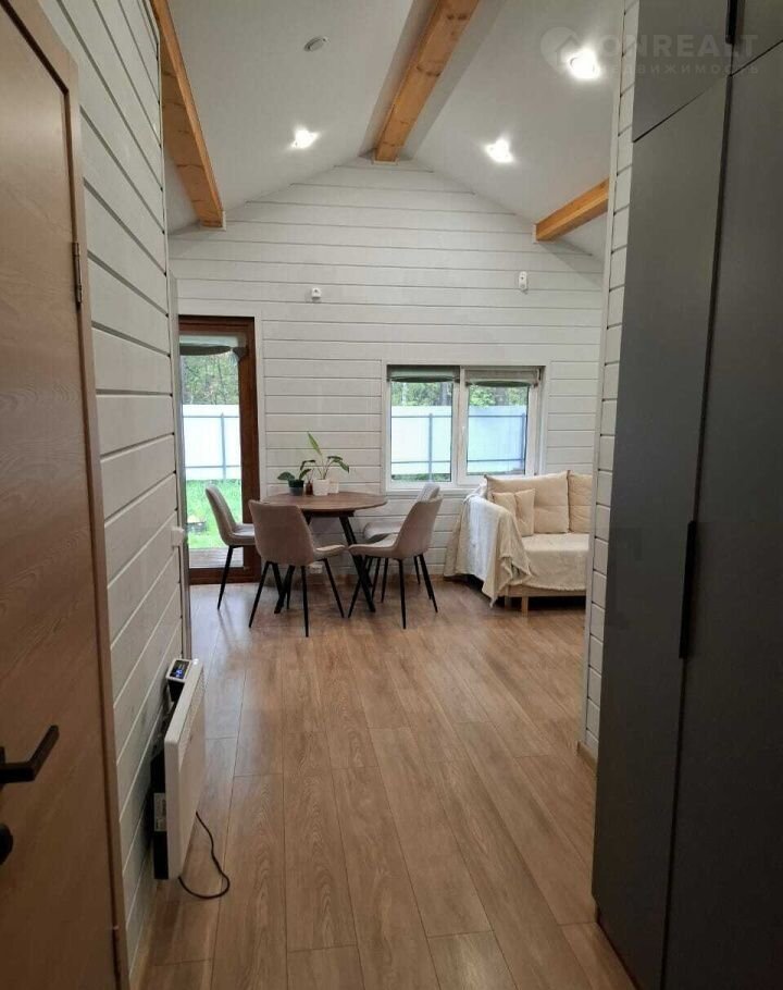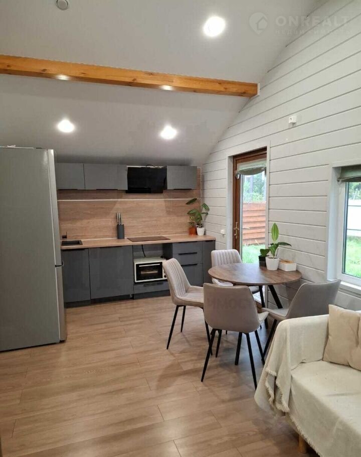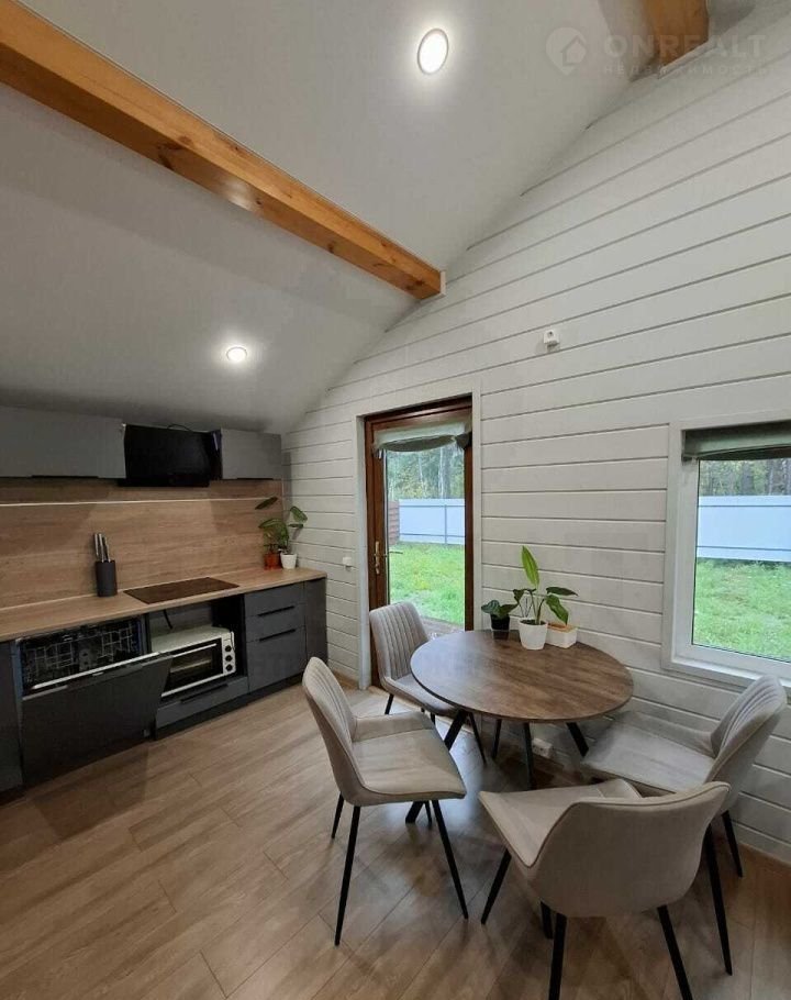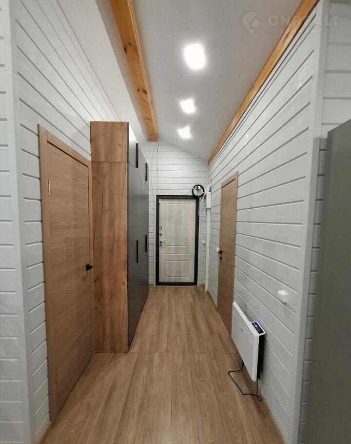 Материал дома - сэндвич панели, с двух сторон метал. лист, утеплитель пенополистерол. Фундамент свайный, обвязка есть. Каркас из бруса, отделка - имитация бруса. Во всех комнатах на полу ламинат, в санузле на полу кварц-винил, на стенах качественная ПВХ плитка. Во всем доме натяжные потолки с точечными светильниками. Вытяжка в каждой комнате, сигнализация, интернет. Из кухни-гостиной - выход на террасу.