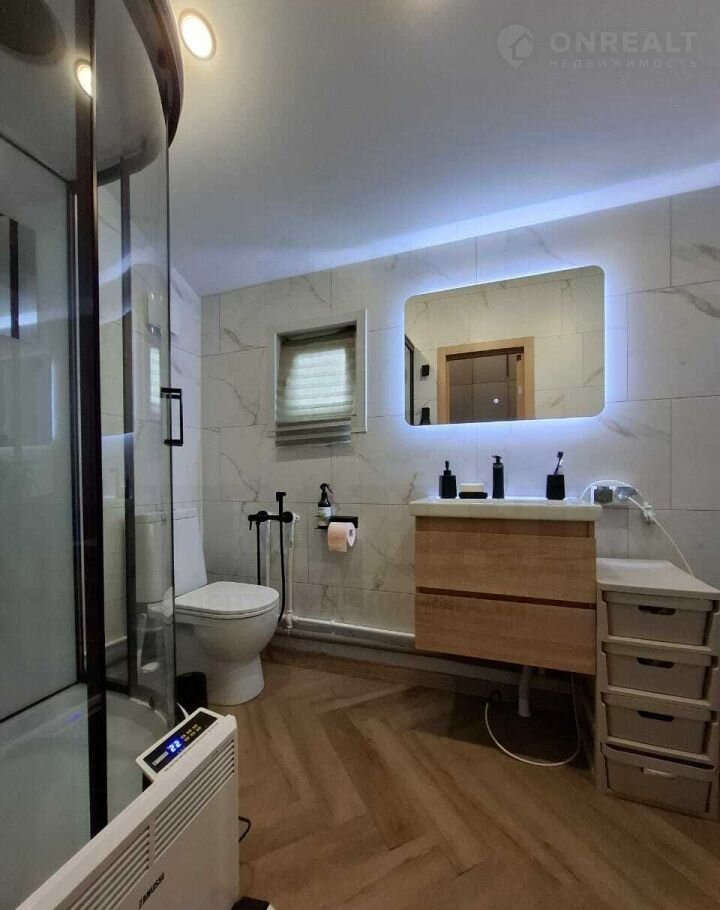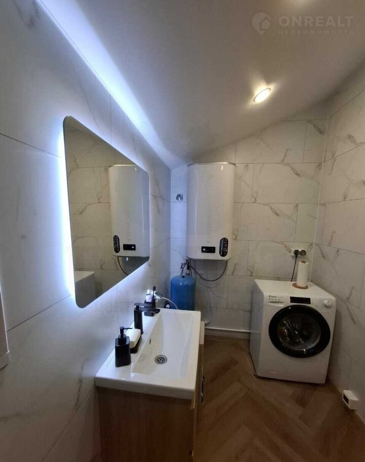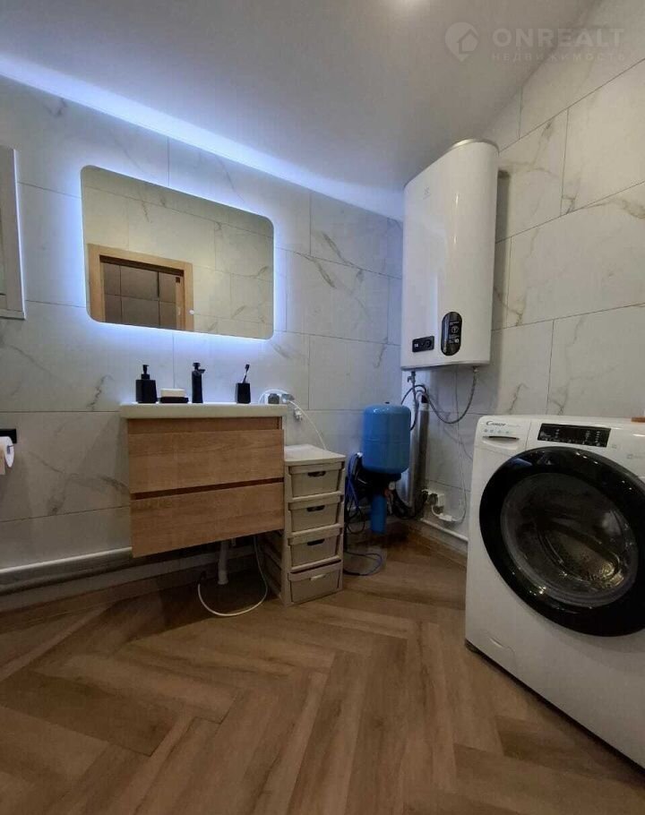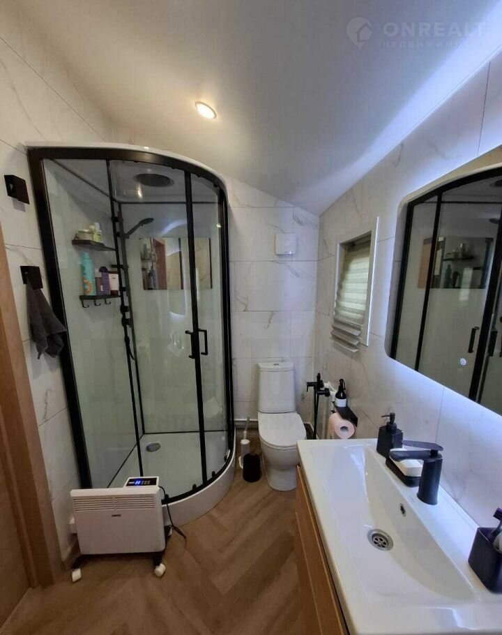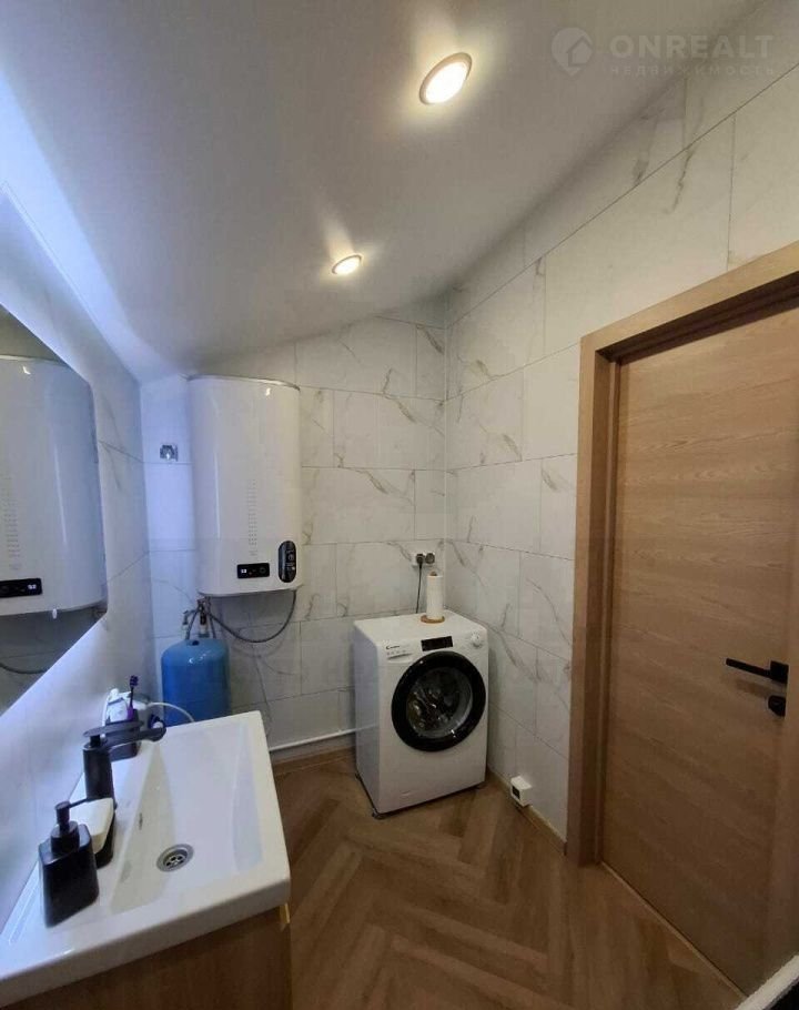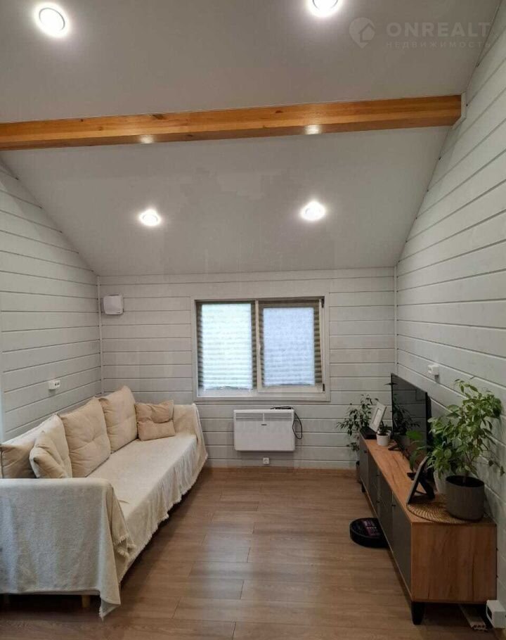 Материал дома - сэндвич панели, с двух сторон метал. лист, утеплитель пенополистерол. Фундамент свайный, обвязка есть. Каркас из бруса, отделка - имитация бруса. Во всех комнатах на полу ламинат, в санузле на полу кварц-винил, на стенах качественная ПВХ плитка. Во всем доме натяжные потолки с точечными светильниками. Вытяжка в каждой комнате, сигнализация, интернет. Из кухни-гостиной - выход на террасу.