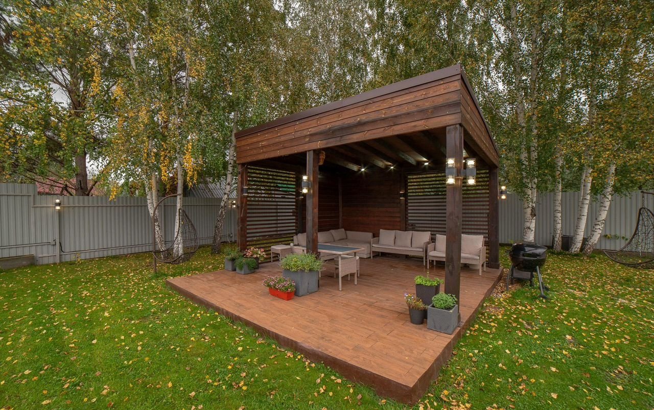 Ухоженный газон с беседкой для отдыха, уличная подсветка, все для удобства и отдыха а природе.