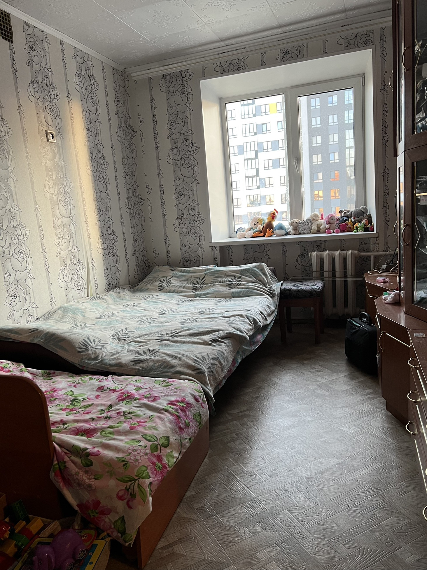 Отличная комната в кирпичном общежитии, фактически площадь примерно 25 кВ, отдельная лоджия застекленная пластиком.