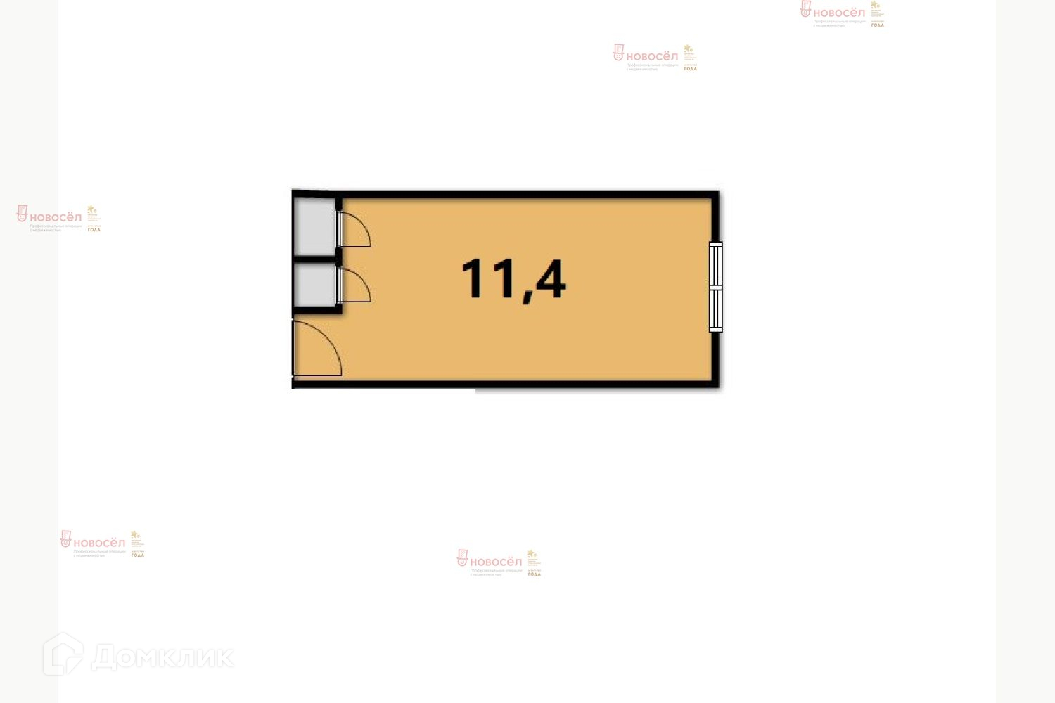 Жилая площадь 11.4 м2
