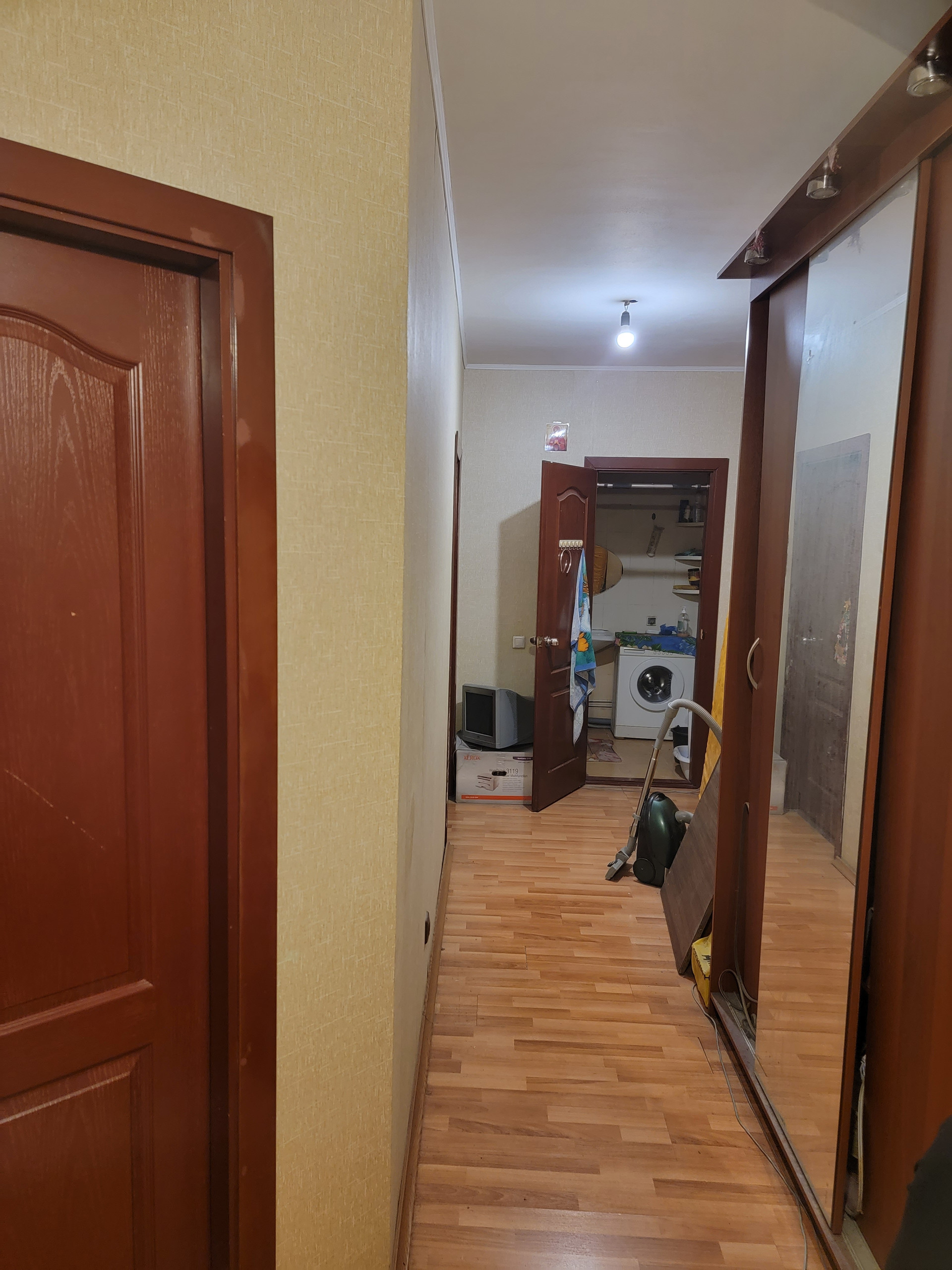 Вместе с комнатой передается движимое имущество- новый холодильник, стиральная машина, кухонный гарнитур, два шкафа- купе, диван.
