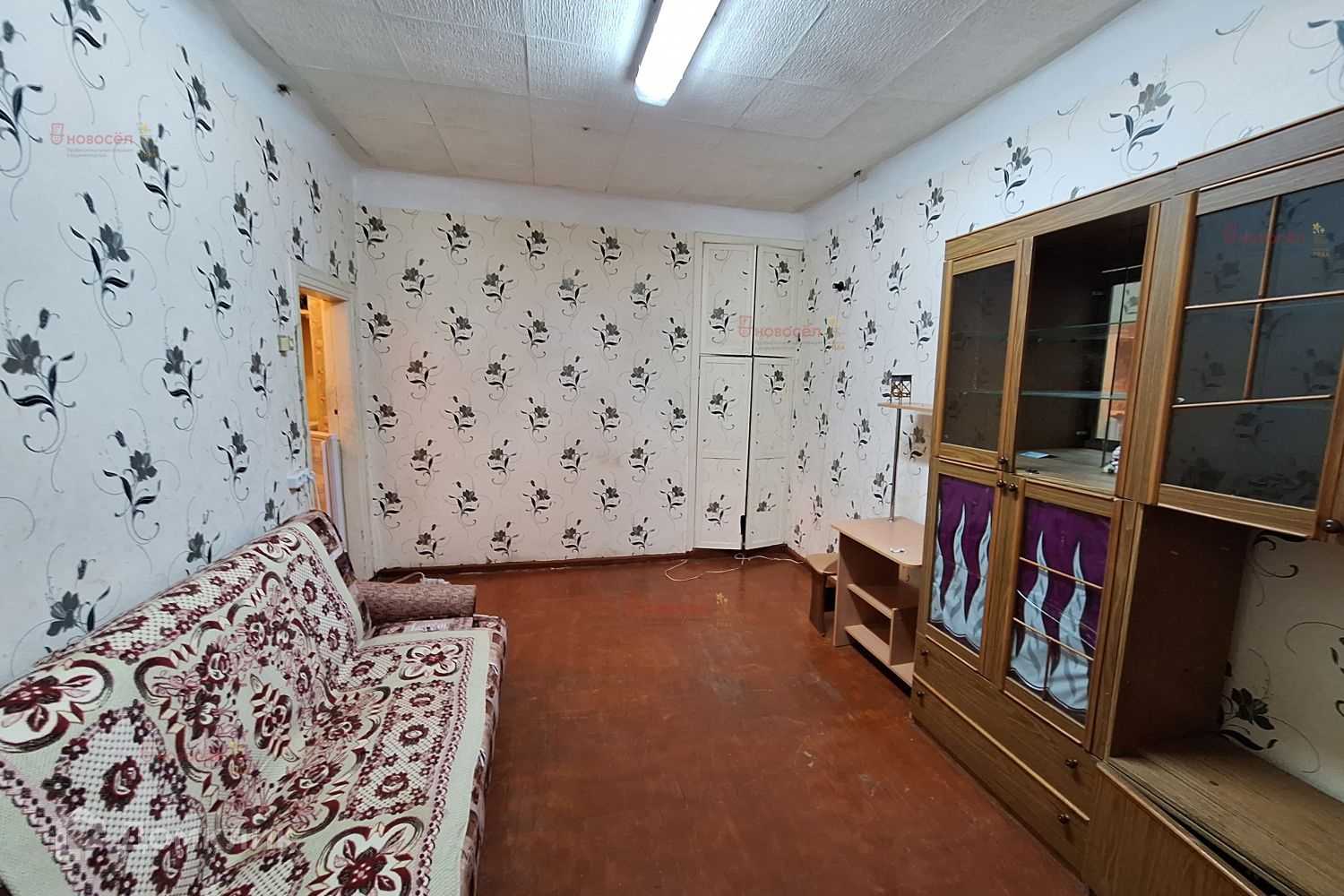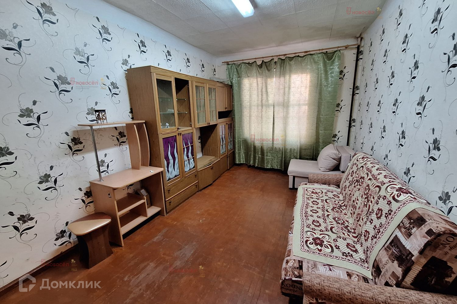 Комната большая, теплая. Остается диван, кресло-кровать, шкафы, стол, стиральная машина.