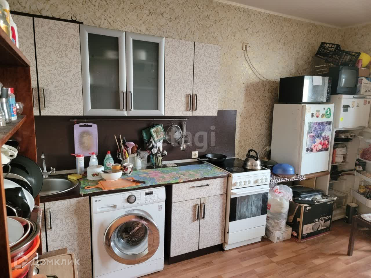 Вместе с комнатой передается движимое имущество- новый холодильник, стиральная машина, кухонный гарнитур, два шкафа- купе, диван.