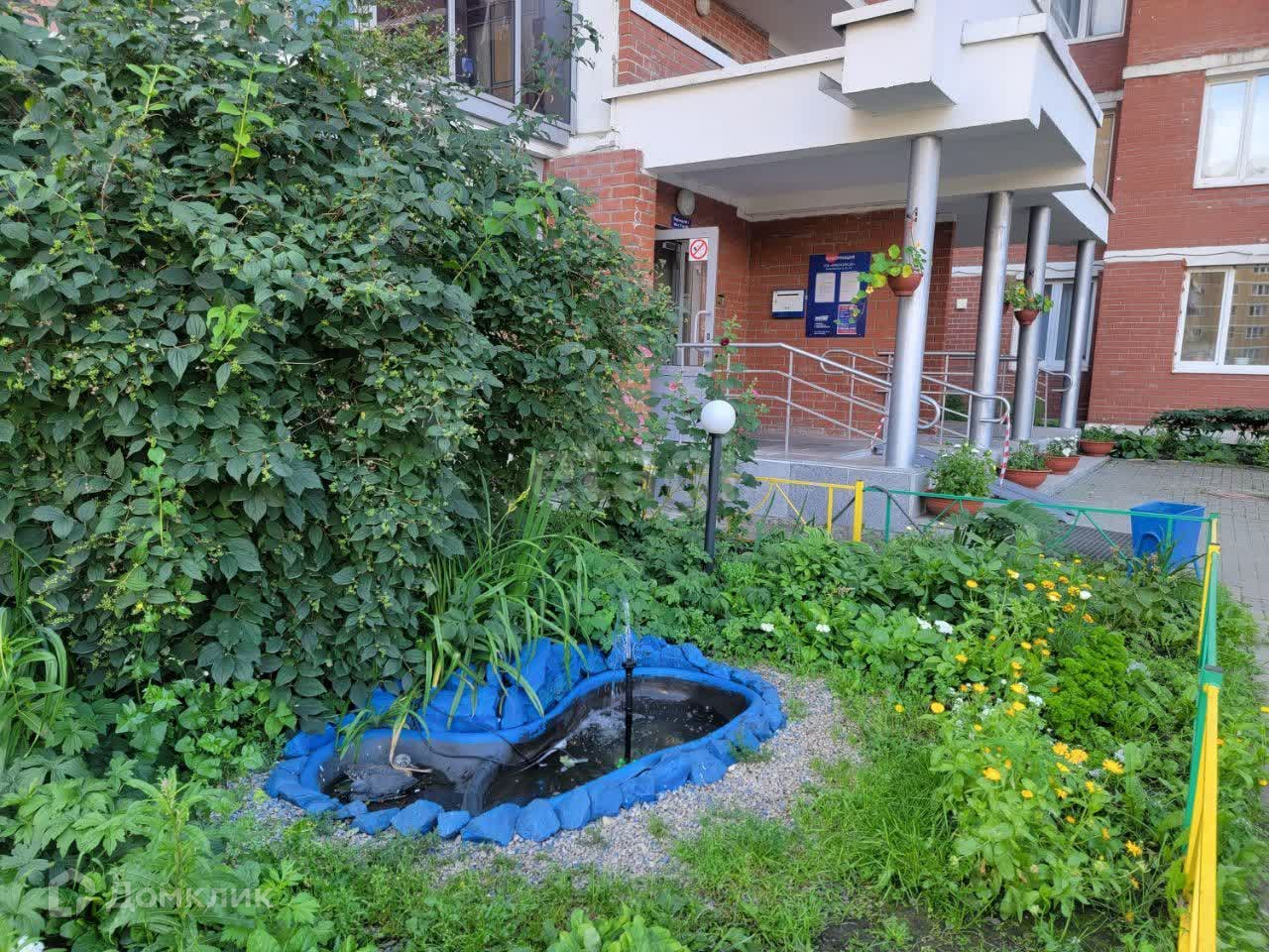 Во дворе фонтан, озеленение, корт, детская площадка.