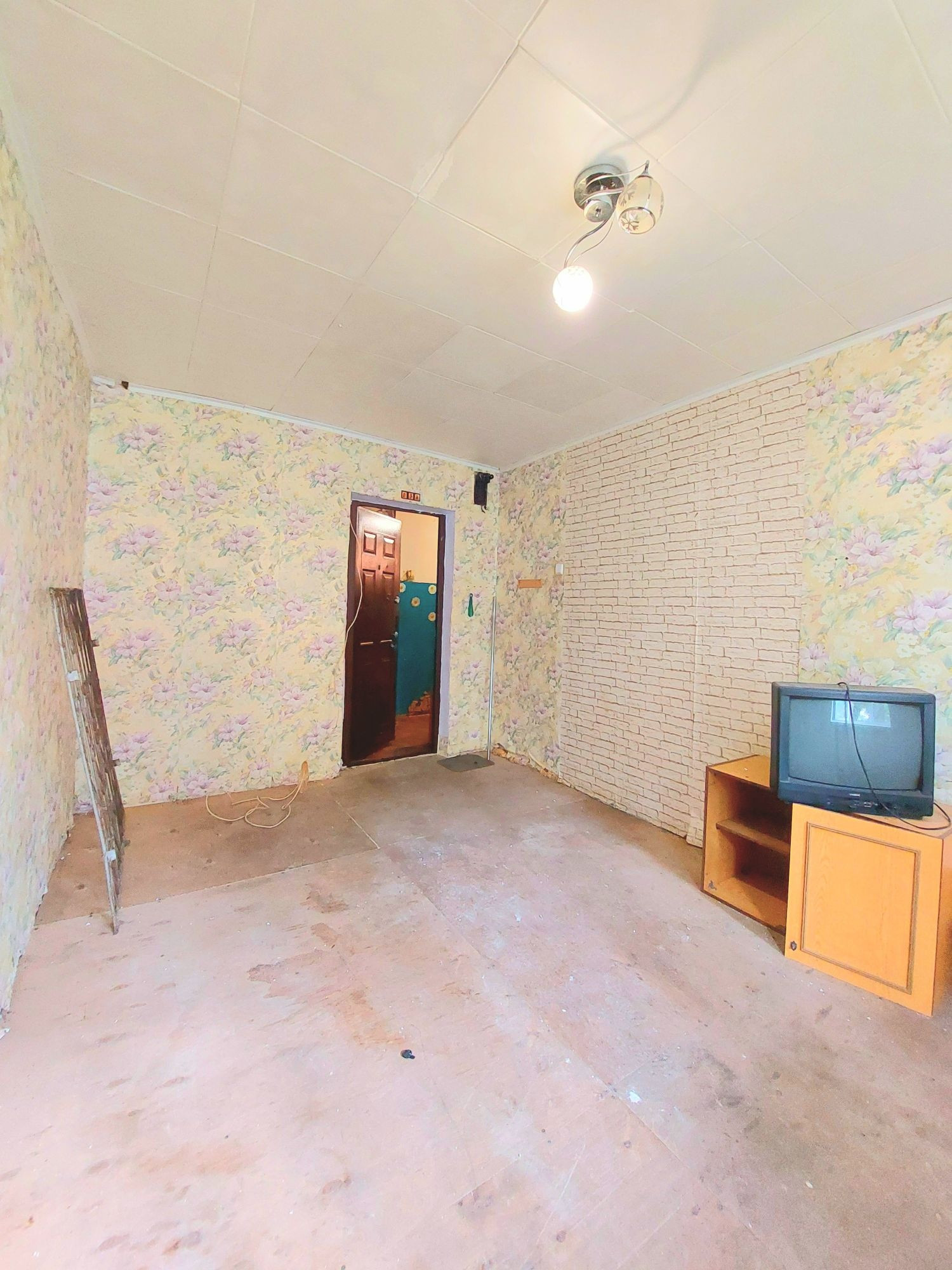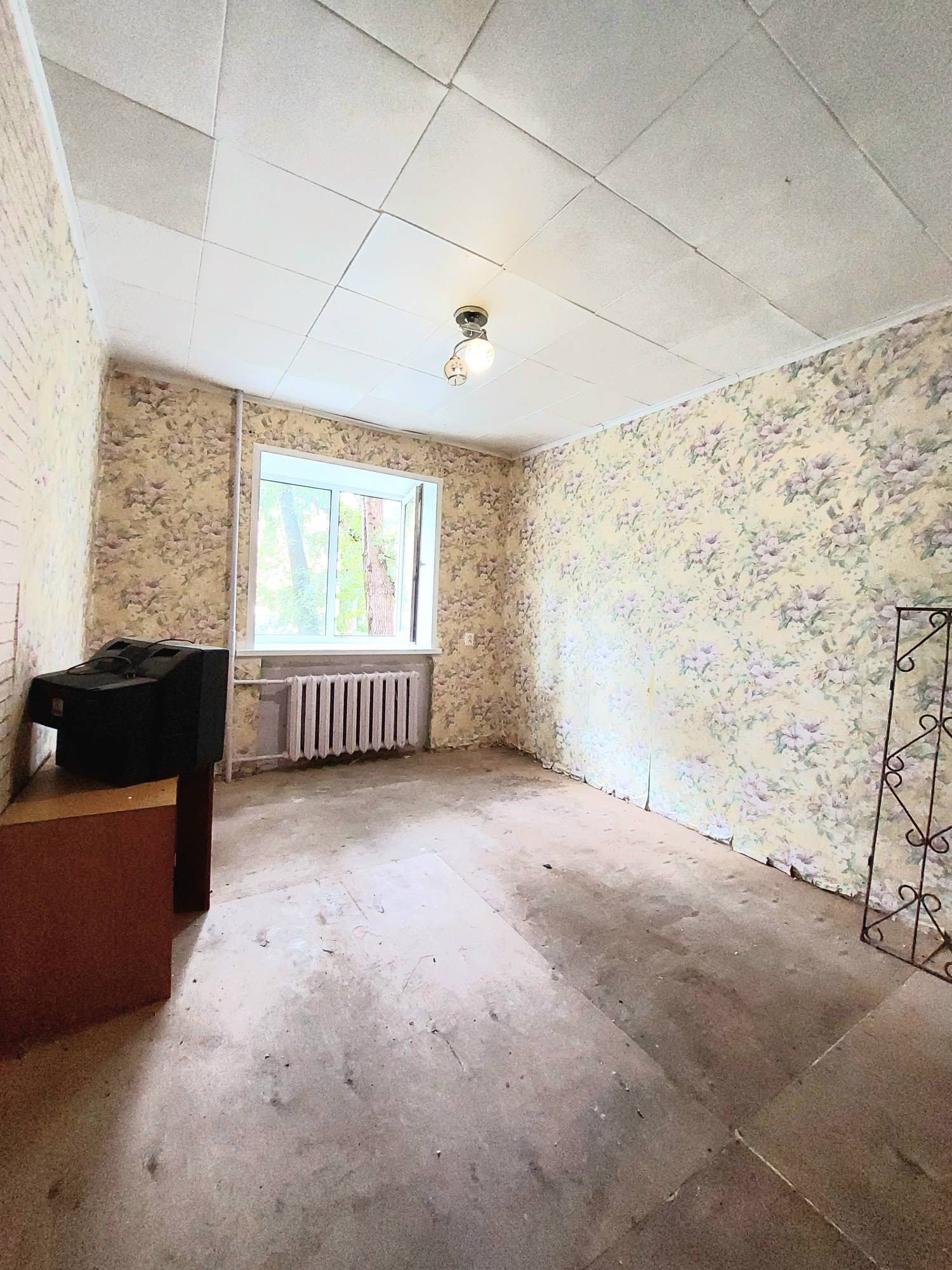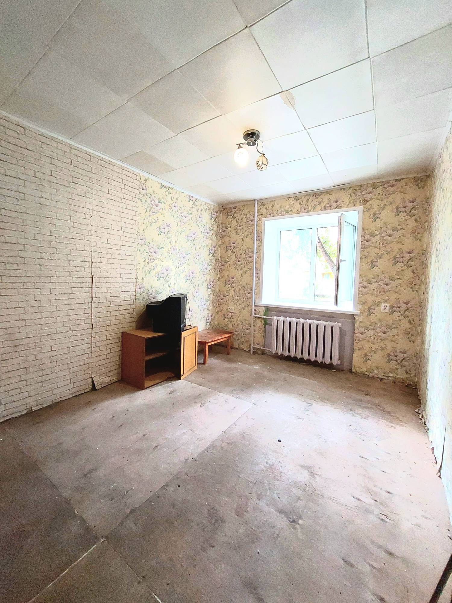 В комнате установлено окно ПВХ, остальное требует ремонта, включая замену входной двери.