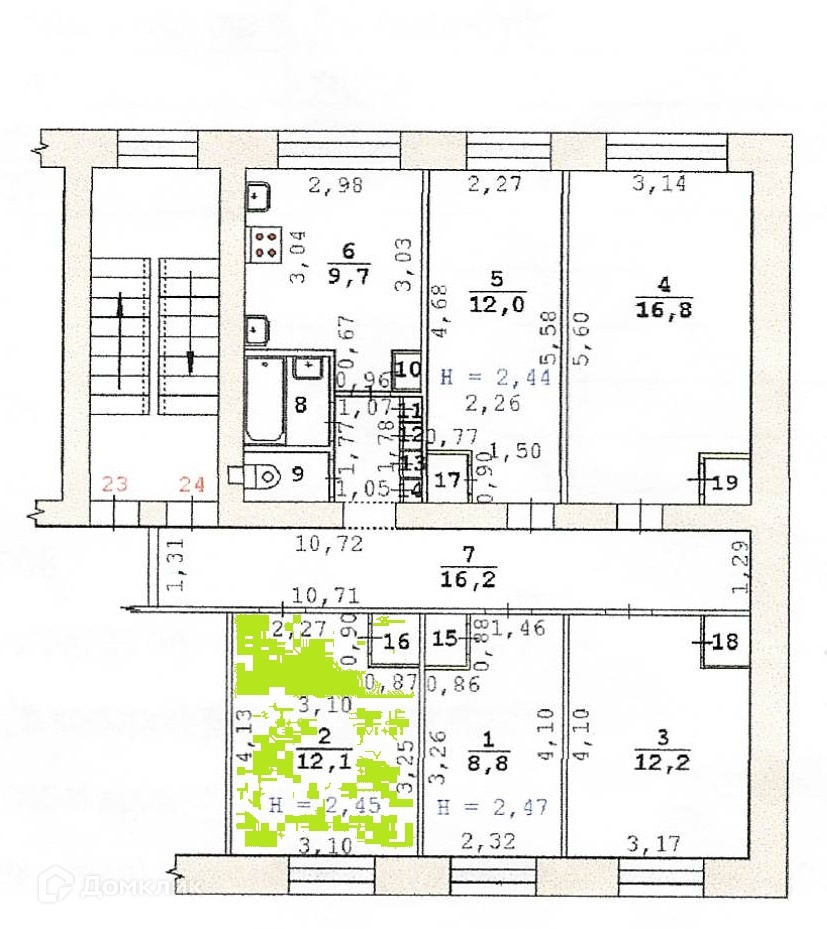 Высота потолков 2.6 м