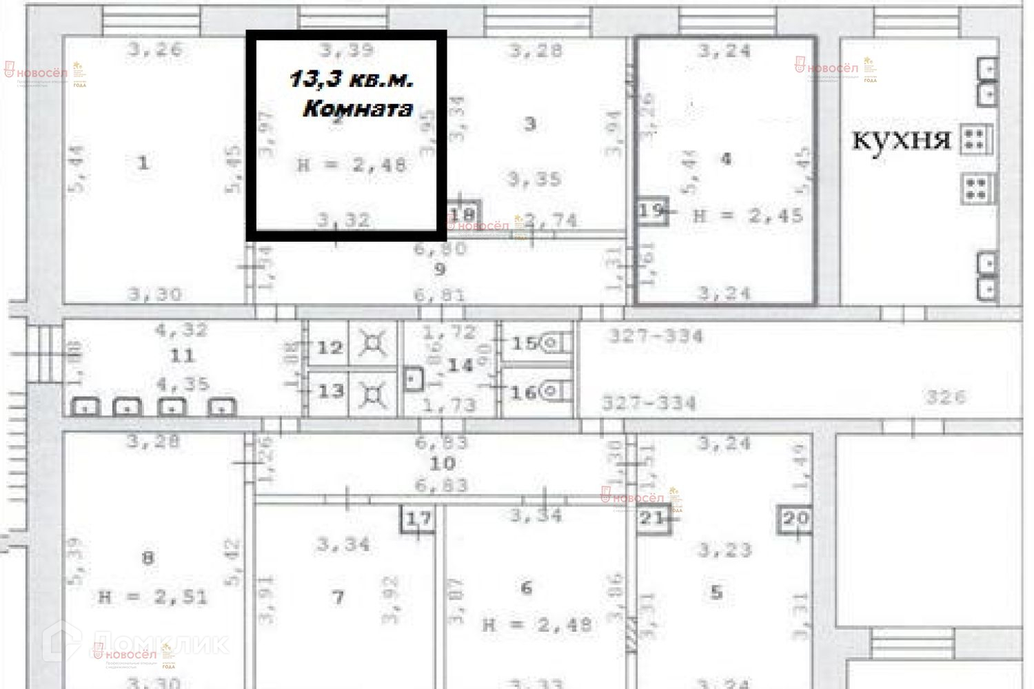 Площадь комнат