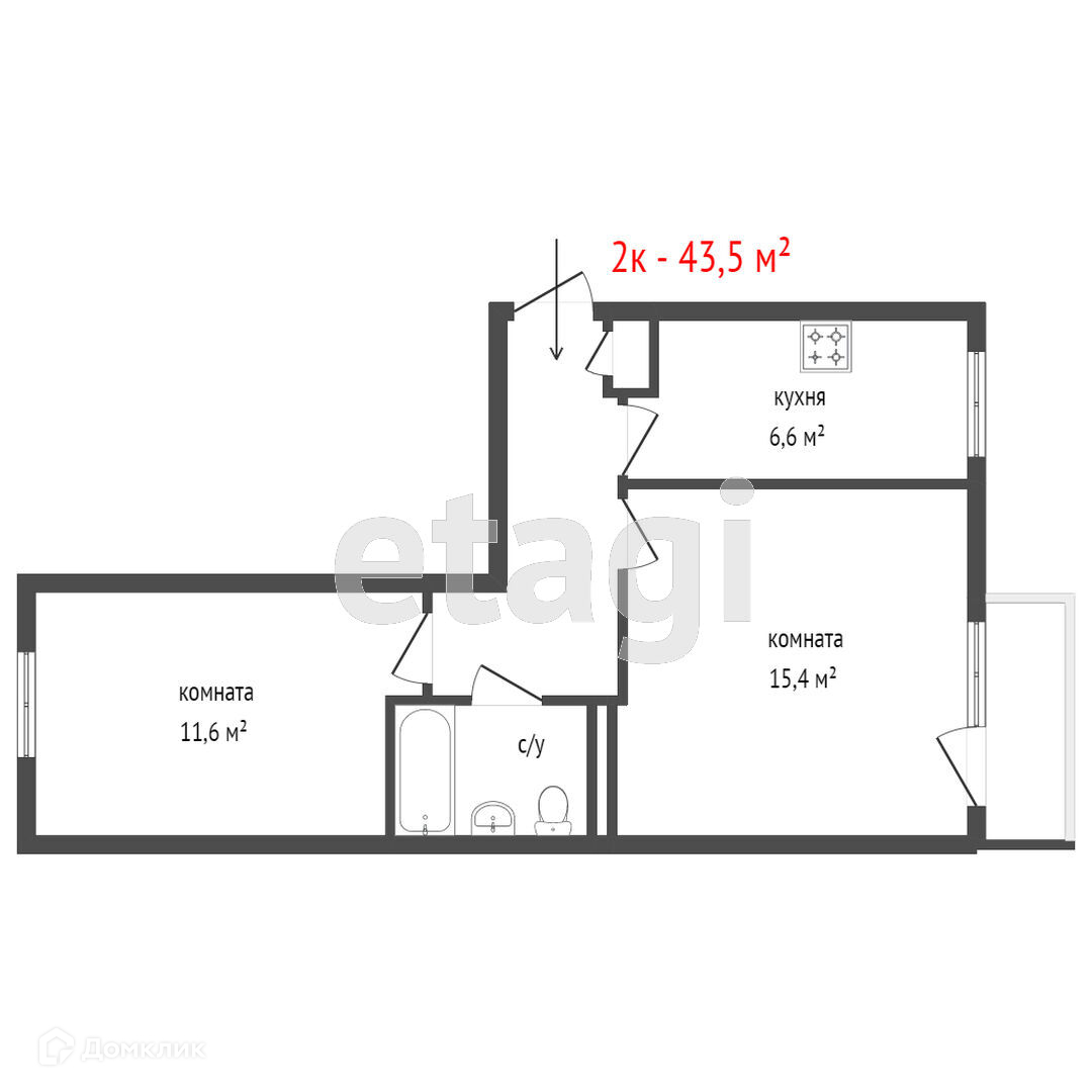 Общая площадь 15.4 м2