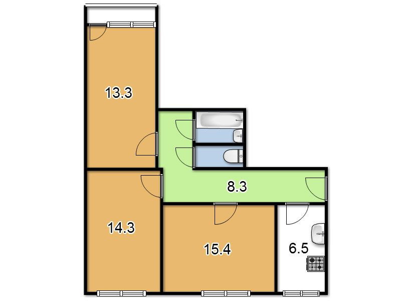 Комнат в квартире 3