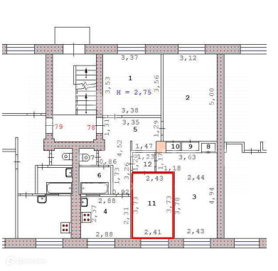 Высота потолков 2.75 м