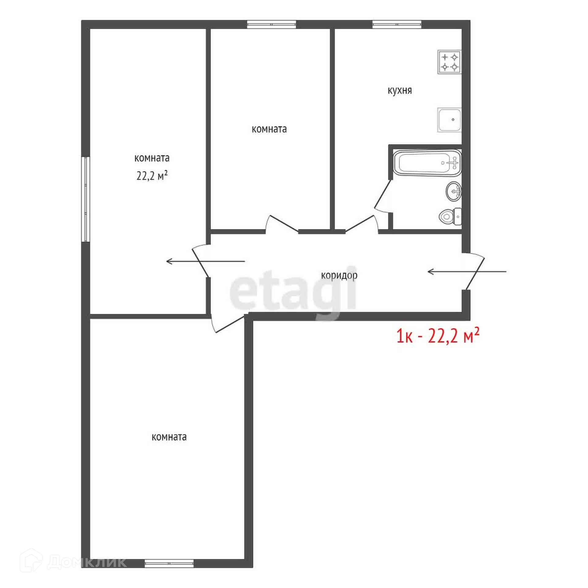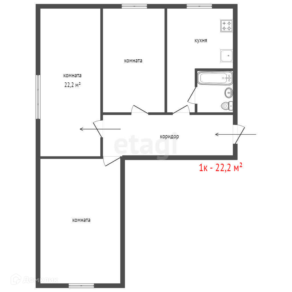 Общая площадь 22.2 м2