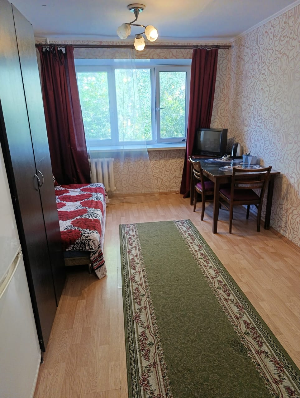 Центр. Дом стоит во дворе, удален от дороги. Светлая комната, теплая. На этаже чисто, ухожено. Соседи спокойные, аккуратные. Рядом магазины, детский сад, школа. Близко остановки общественного транспорта.