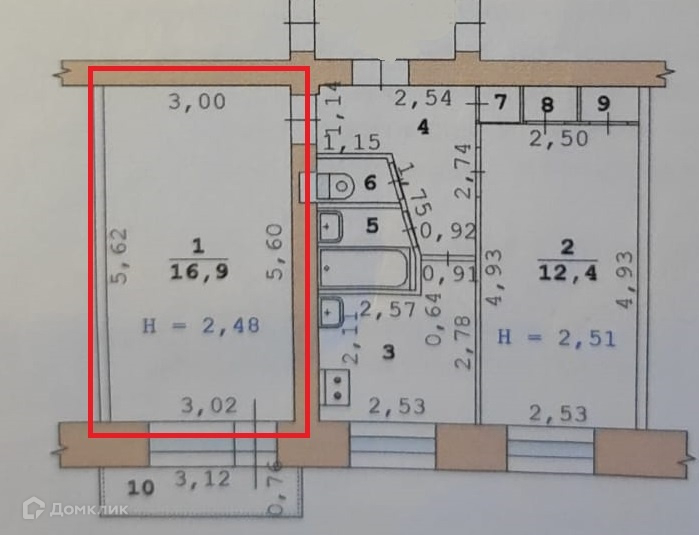 Площадь комнат