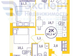 Общая площадь: 50.6 м2