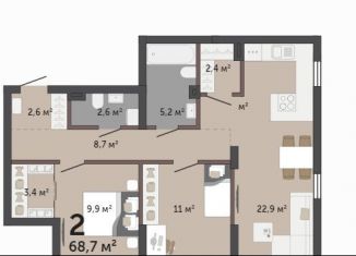Продается 2-ком. квартира, 68.7 м2, улица Краснолесья, 10/7