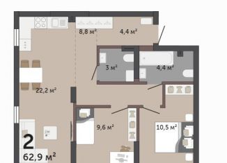 Продажа 2-ком. квартиры, 62.9 м2, улица Краснолесья, 10/7