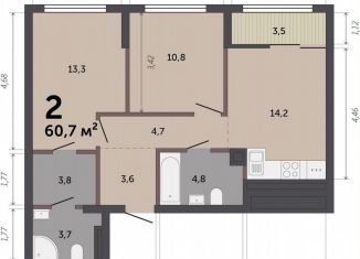 Продаю 2-комнатную квартиру, 60.7 м2, улица Краснолесья, 10/6