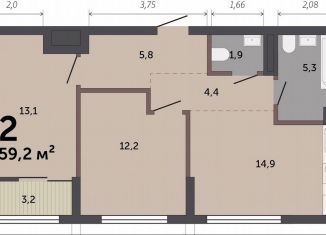 Продажа 2-комнатной квартиры, 60.2 м2, улица Краснолесья, 10/6