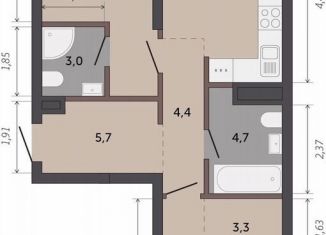 2-ком. квартира на продажу, 58.6 м2, улица Краснолесья, 10/6