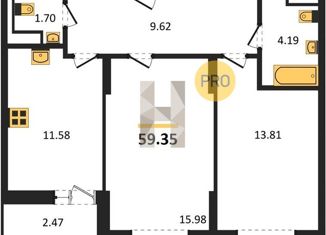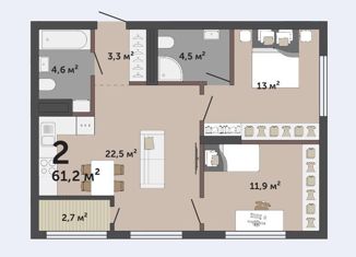 Продажа двухкомнатной квартиры, 61.3 м2, улица Академика Ландау, 9