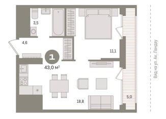 Общая площадь: 43 м2