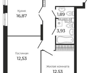 Продам двухкомнатную квартиру, 65.68 м2