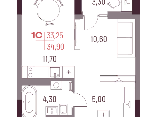 Общая площадь: 34 м2
