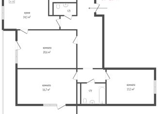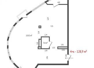 Квартира на продажу со свободной планировкой, 128.9 м2