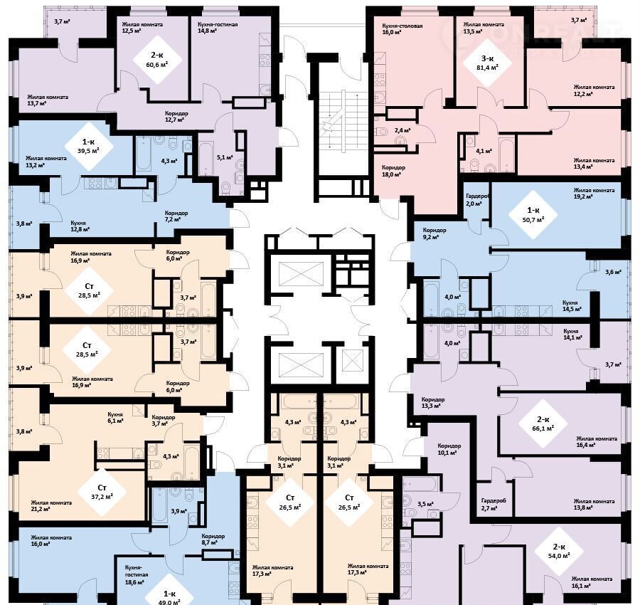 В продаже имеются студии, 1-, 2- и 3-х комнатные квартиры с площадью от 26 до 81 метров квадратных и большим выбором планировок на любой вкус. Кухня-гостиная, большие коридоры, гардеробные и многие другие планировки ждут вас в ЖК VЕЕR РАRК. Квартиры сдаются сразу с качественной чистовой отделкой, чтобы новые собственники смогли сразу же переехать. В квартирах уже имеются: