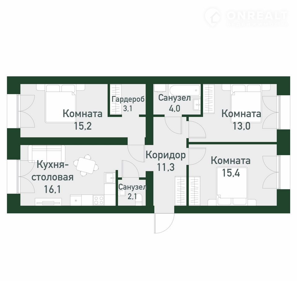 Общая площадь 80.1 м2