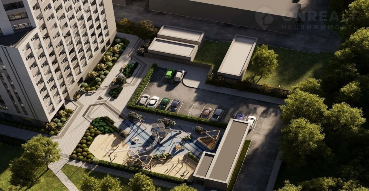 Блaгоустройство прилегающей территории включает в себя: озеленение и малые формы, ландшафтный дизайн с разнообразными цветниками, аккуратным газоном, высадкой деревьев и кустарников. Закрытый двор с функциональной детской площадкой предлагает пространство для семейного отдыха и детских игр. Территория двора полностью огорожена и снабжена пропускной системой: калитки с электронным доступом, круглосуточный пост охраны и камеры видеонаблюдения. А также соседский центр для жильцов, расположенный на 1 этаже.