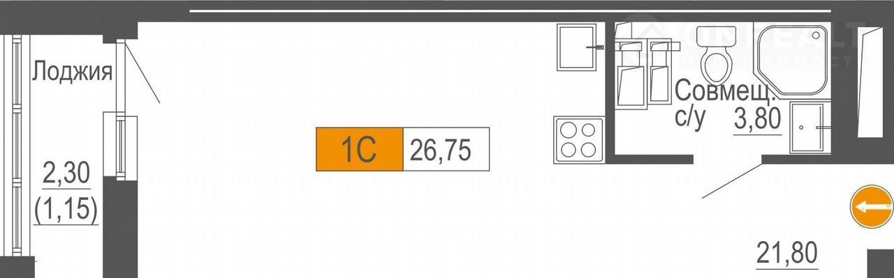 Общая площадь 26.8 м2