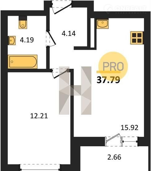 Общая площадь 37.8 м2