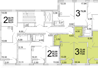 Общая площадь: 74.3 м2