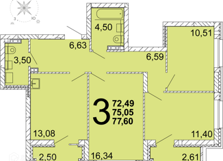Продается 3-ком. квартира, 74.8 м2, улица Академика Ландау, 47/2